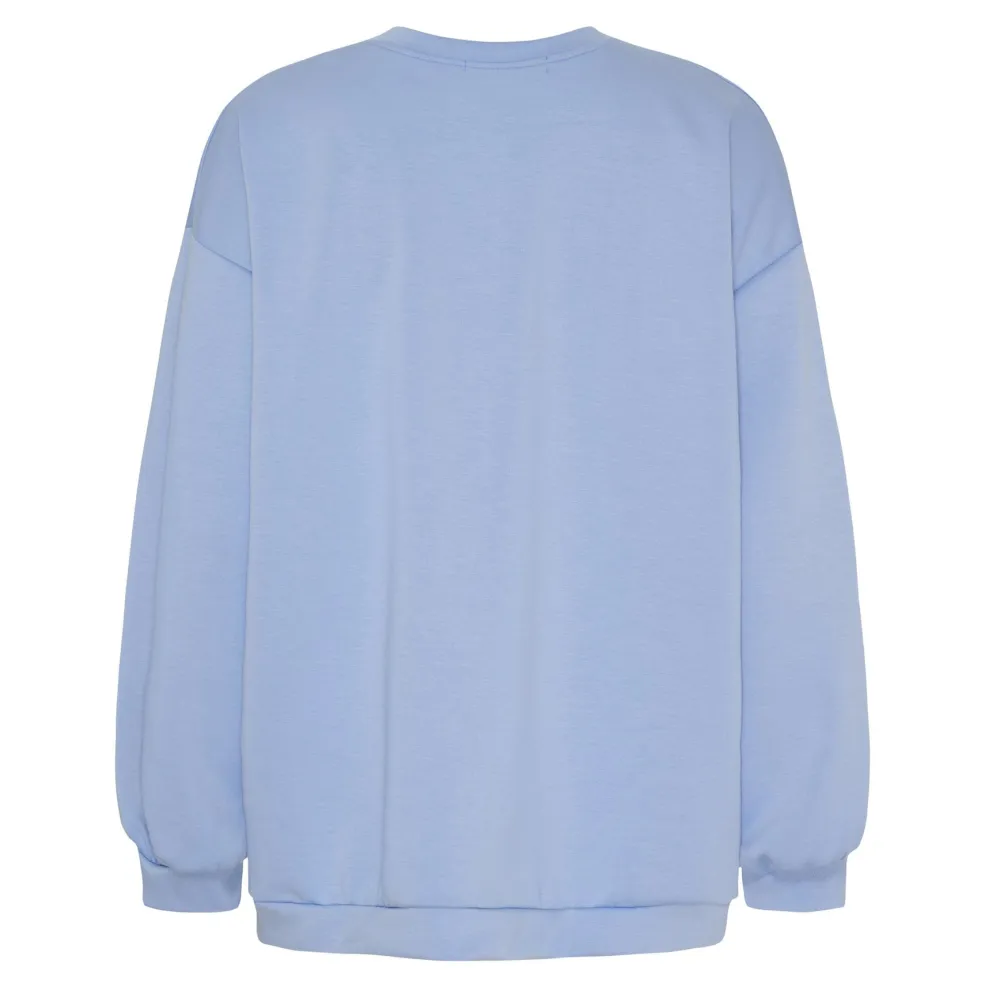 Lyseblå sweatshirt fra Marta Du Chateau. Den er en pullover med oversized pasform og passer til afslappede situationer derhjemme eller i byen.