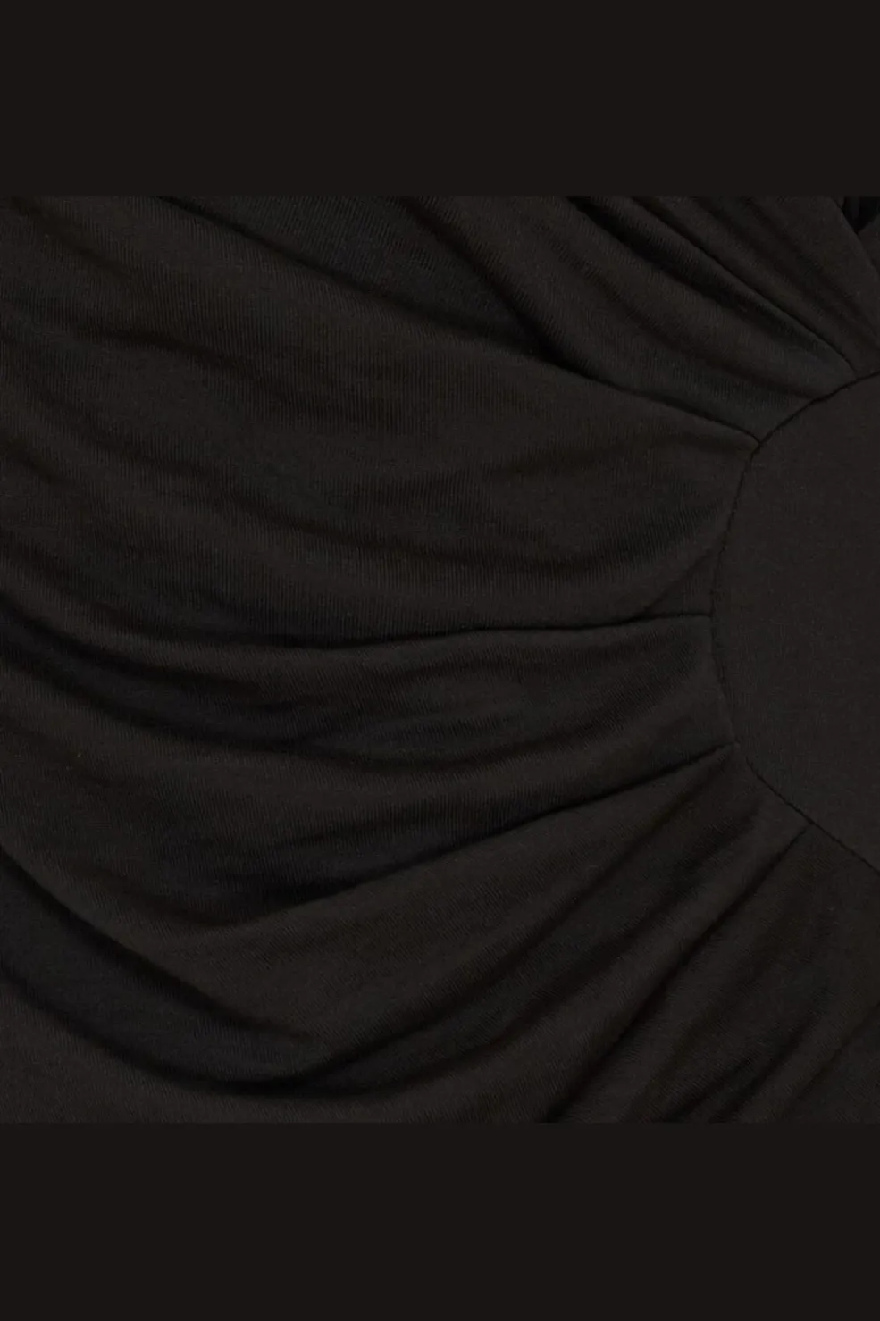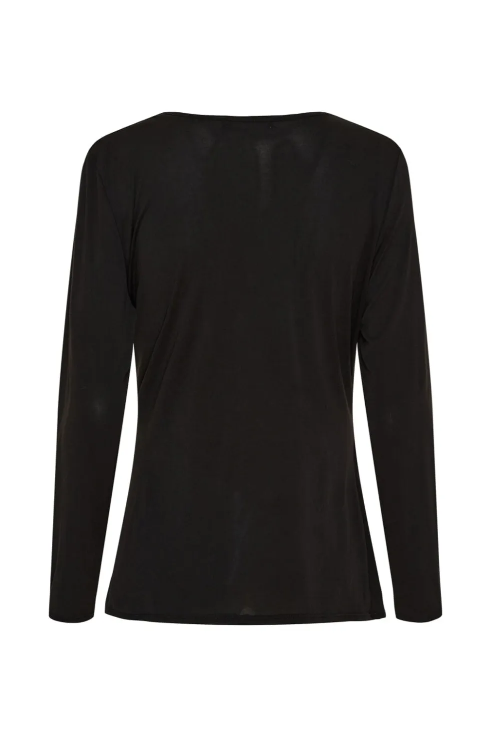 Sort bluse fra Marta Du Chateau med slå-om-effekt. Blusen har rynker på forsiden og V-udskæring, der giver den et blødt fald.