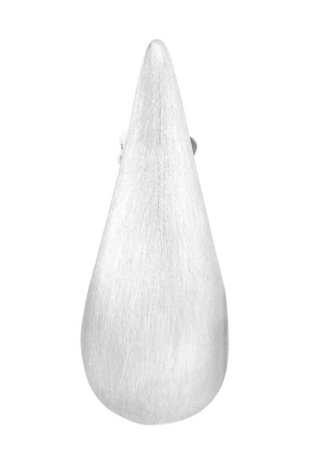 Forsølvede ørestikker fra Jane Kønig med en organisk dråbeform. Øreringen har en børstet overflade, der giver en mat finish og fremhæver den buede form.