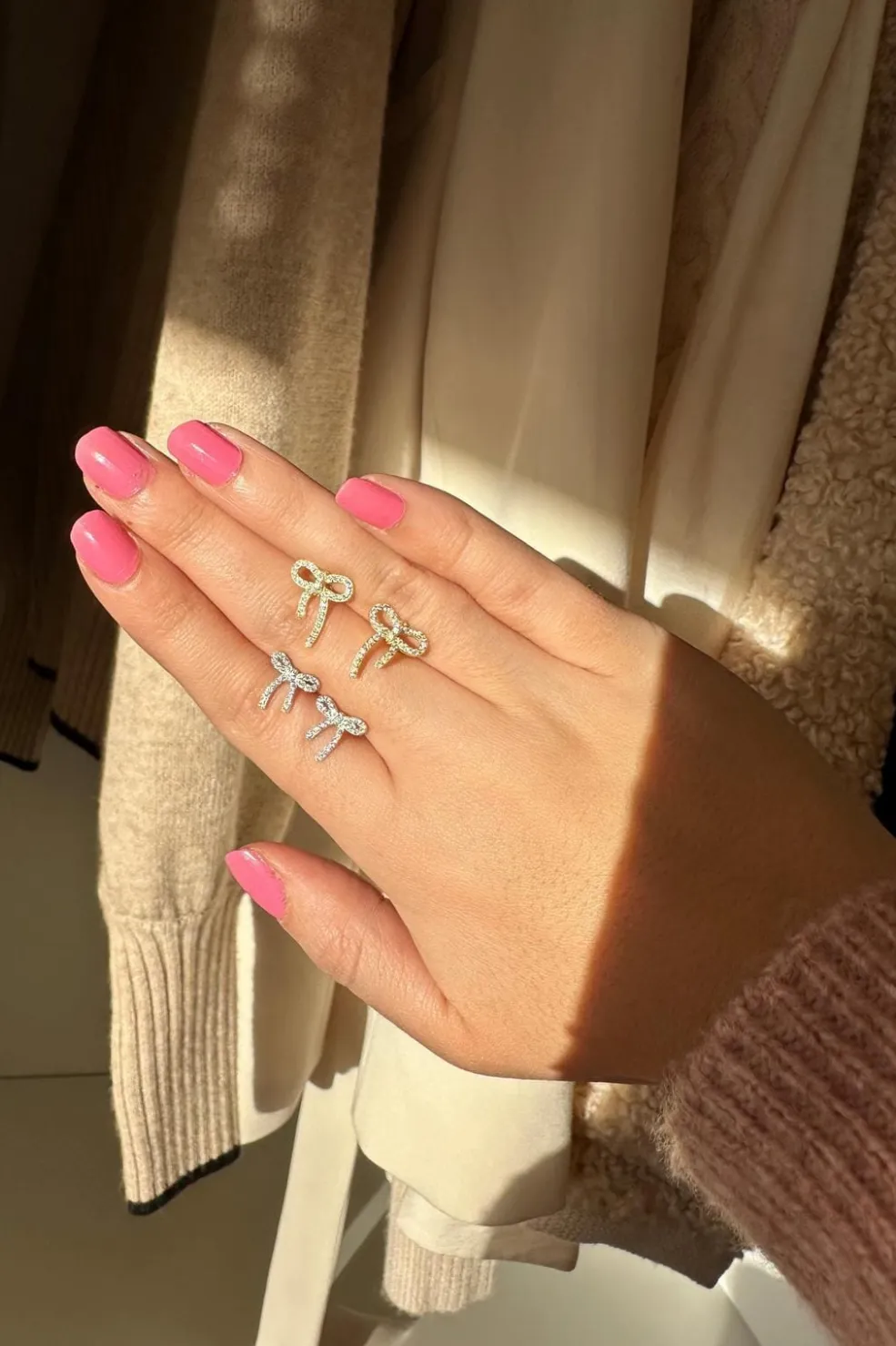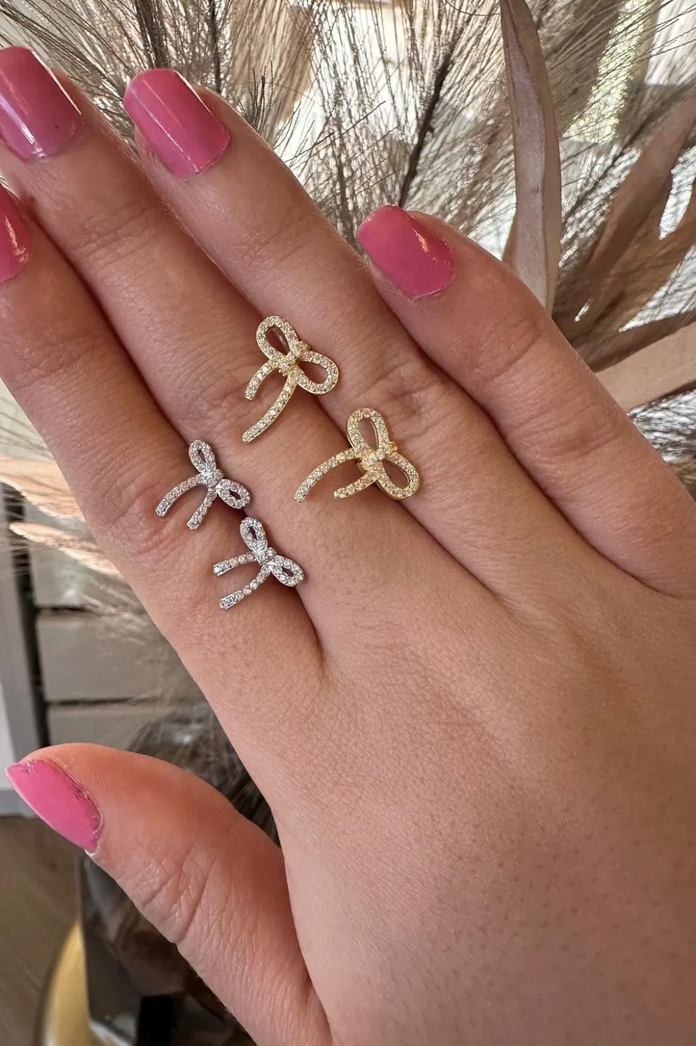 Designet med en delikat sløjfe prydet med en diskret sten, tilføjer de en subtil glans til dit udtryk.