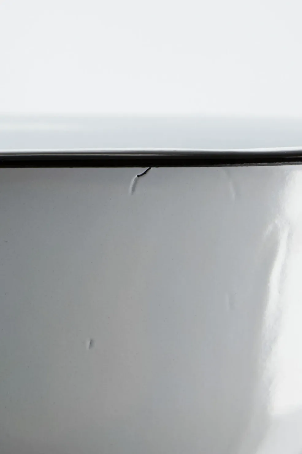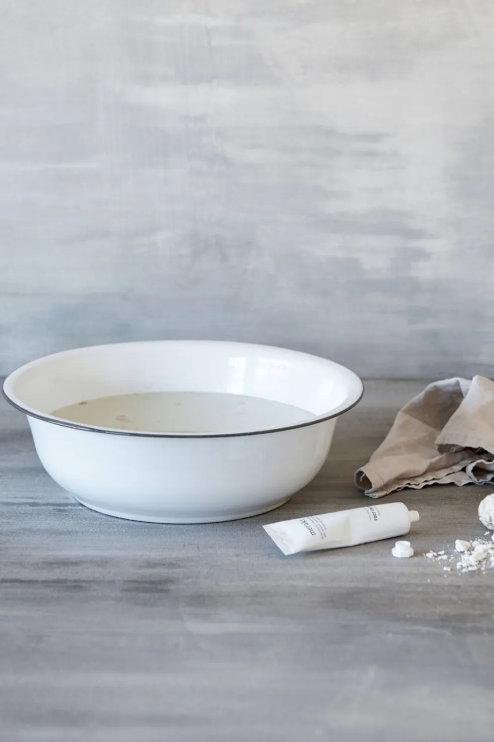 Slap helt af og nyd et dejligt fodbad i dette store og enkle fad fra Meraki. Størrelsen er også ideel til brug i køkkenet, når du skal vaske op. Med det simple og lidt nostalgiske design i hvid med mørk kant ledes tankerne hen på de gammeldags badeanstalter, og dit badeværelse får et strejf af velvære. Fadet hedder Large og fås også i en mindre version. Enhver variation og ufuldkommenhed i overfladen er del af baljens charme og en bevidst del af designet.
