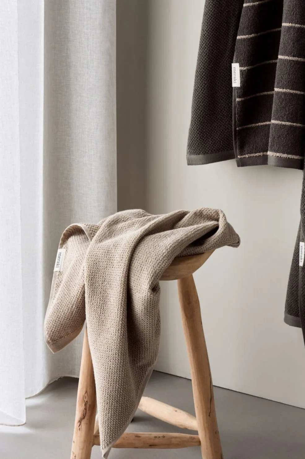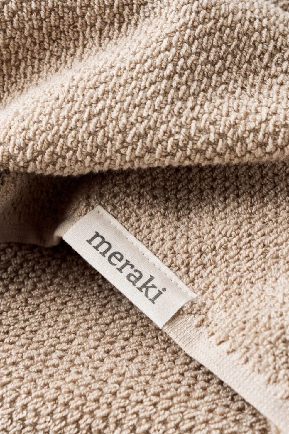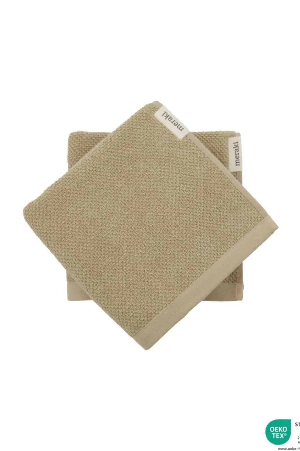 Brug dette sæt med 2 håndklæder fra Meraki til at give dit badeværelse en afslappet makeover. Fremstillet af OEKO-TEX® 100-certificeret bomuld med plysfrotté på begge sider. Præcis det, du har brug for til at tørre dine hænder, da frotté er kendt for at være både blødt, absorberende og yderst behageligt. Håndklæderne med en neutral sandfarve giver dit badeværelse en afslappet stemning, der opmuntrer dig til at gøre hver dag til en dag med selvforkælelse. Brug dem som hverdagshåndklæder eller gæstehåndklæder. Du behøver bare skifte dine håndklæder ud for at skabe en helt ny atmosfære på dit badeværelse.