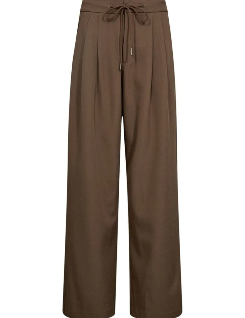 Bukser fra Haute L’Amitié i valnøddebrun farve. Bukserne har en høj talje og en løs pasform med bindebåndsdetaljer.