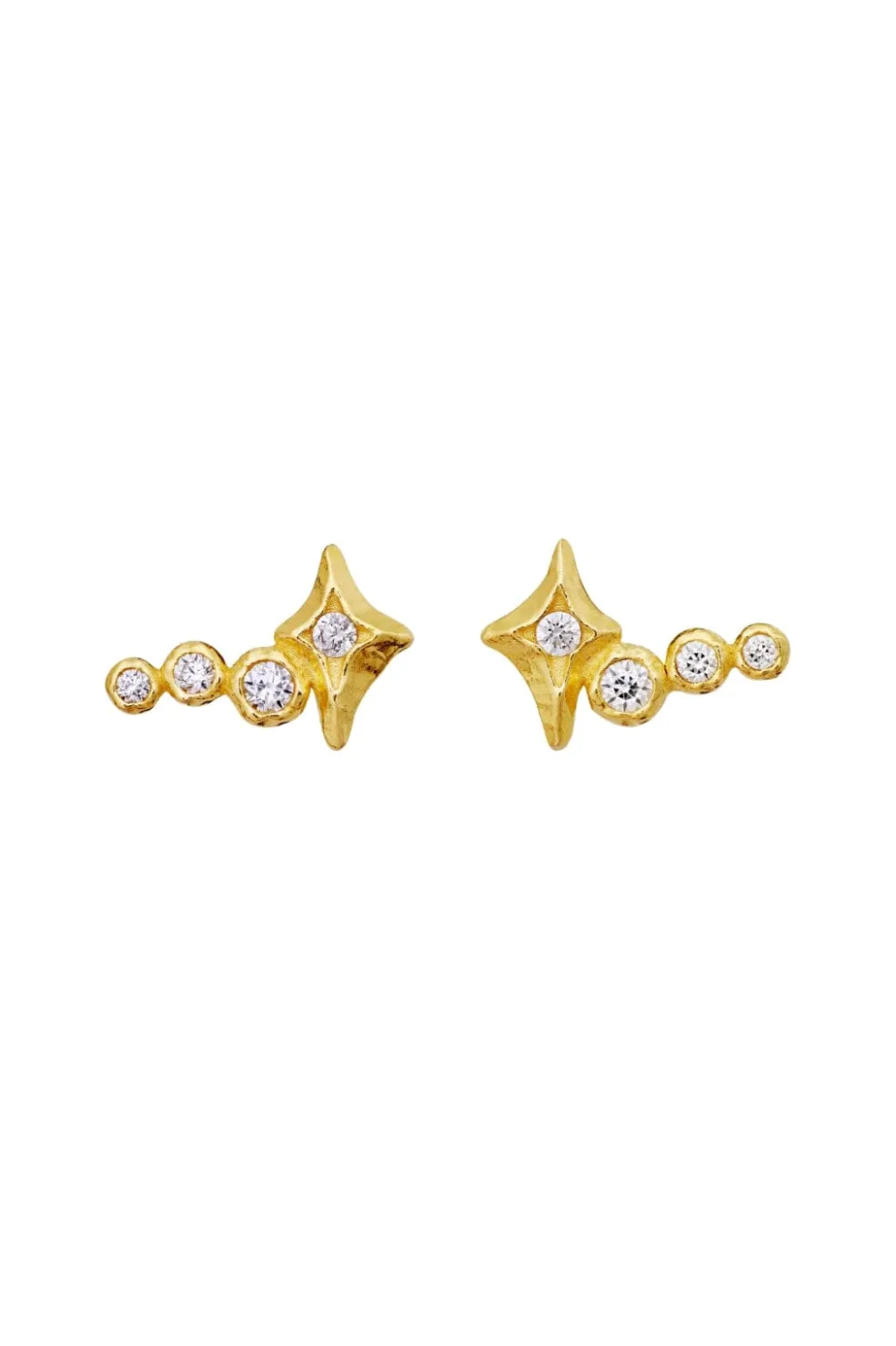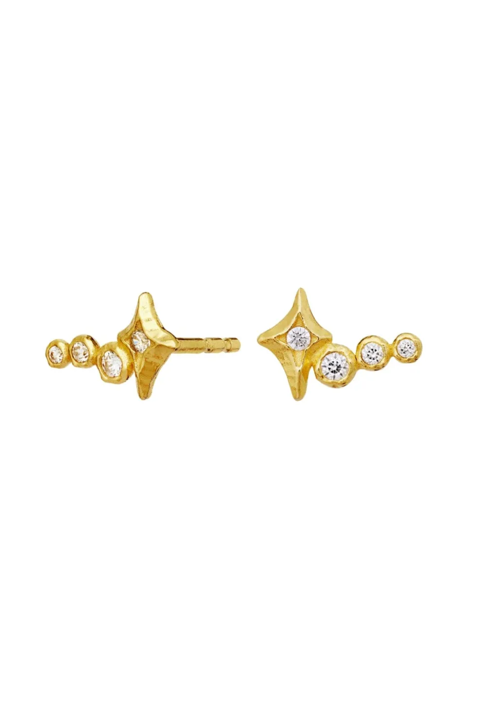 Øreringe fra Maanesten med stjerneformet design og indlagte sten. Lavet af genanvendt sterlingsølv belagt med 18 karat guld i en gylden farve.