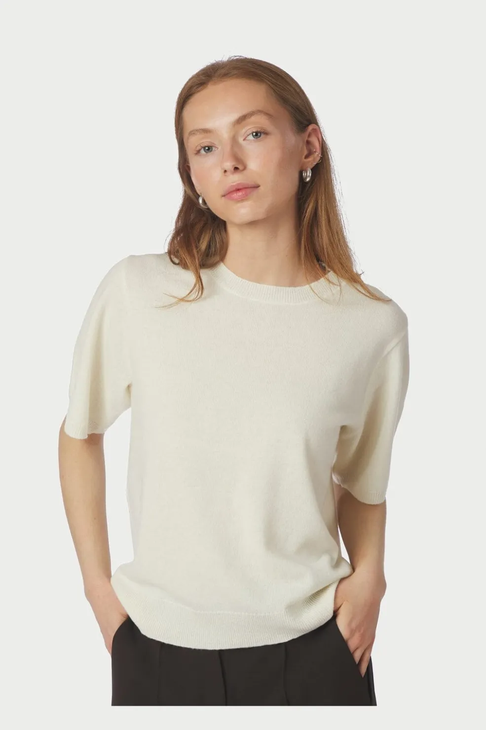 En cremehvid strikbluse fra Neo Noir, lavet af 100 % uld. Blusen har korte ærmer og en lille krave ved halsen.