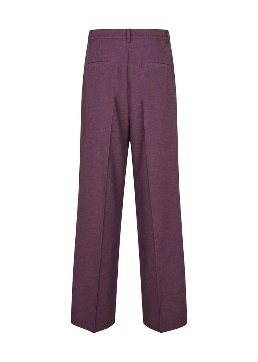 Lange bukser fra Modström i en dyb lilla nuance kaldet Winter Bloom. Bukserne har markante frontfolder og bæltestropper, der giver et klassisk udtryk.
