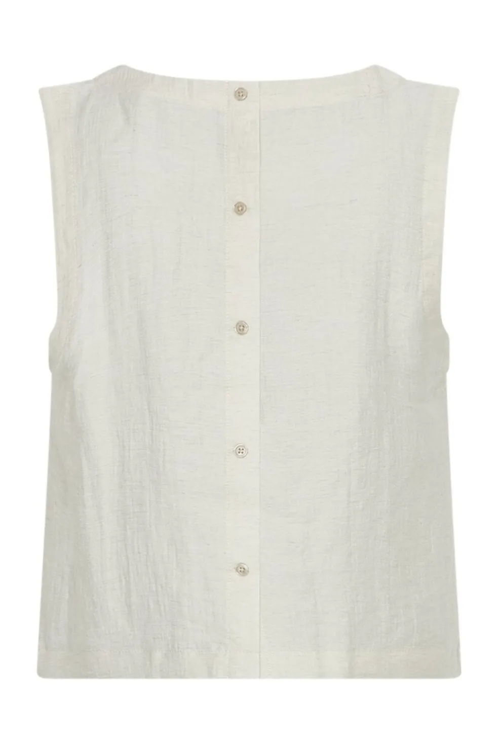 Ærmeløs top fra Moss Copenhagen i sand melange. Toppen har en rund halsudskæring og et enkelt design i en neutral farvetone med meleret udtryk.