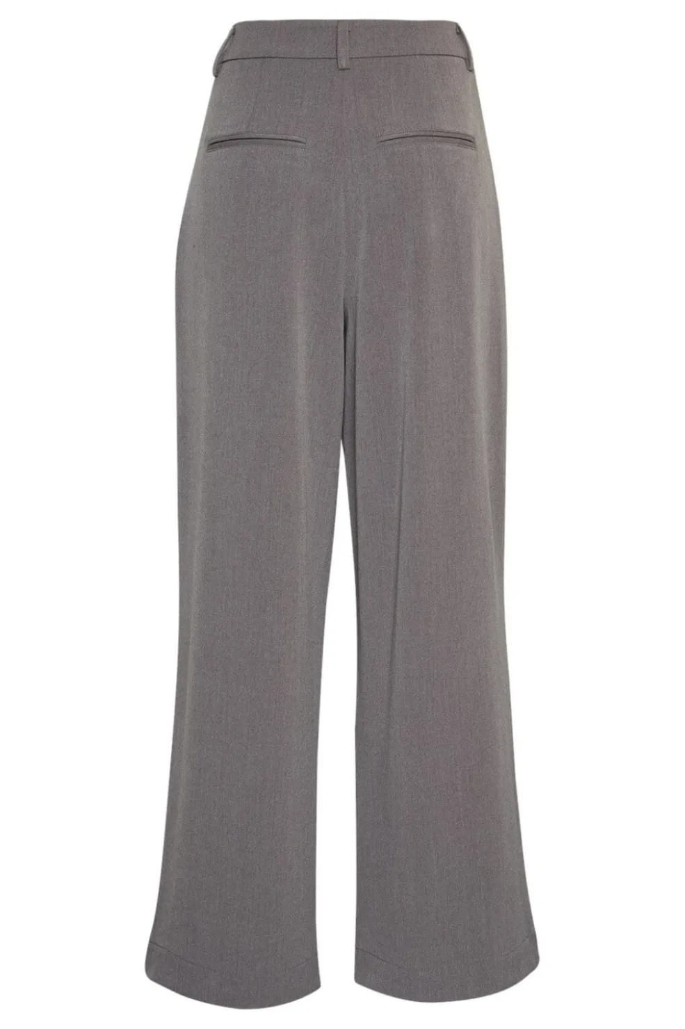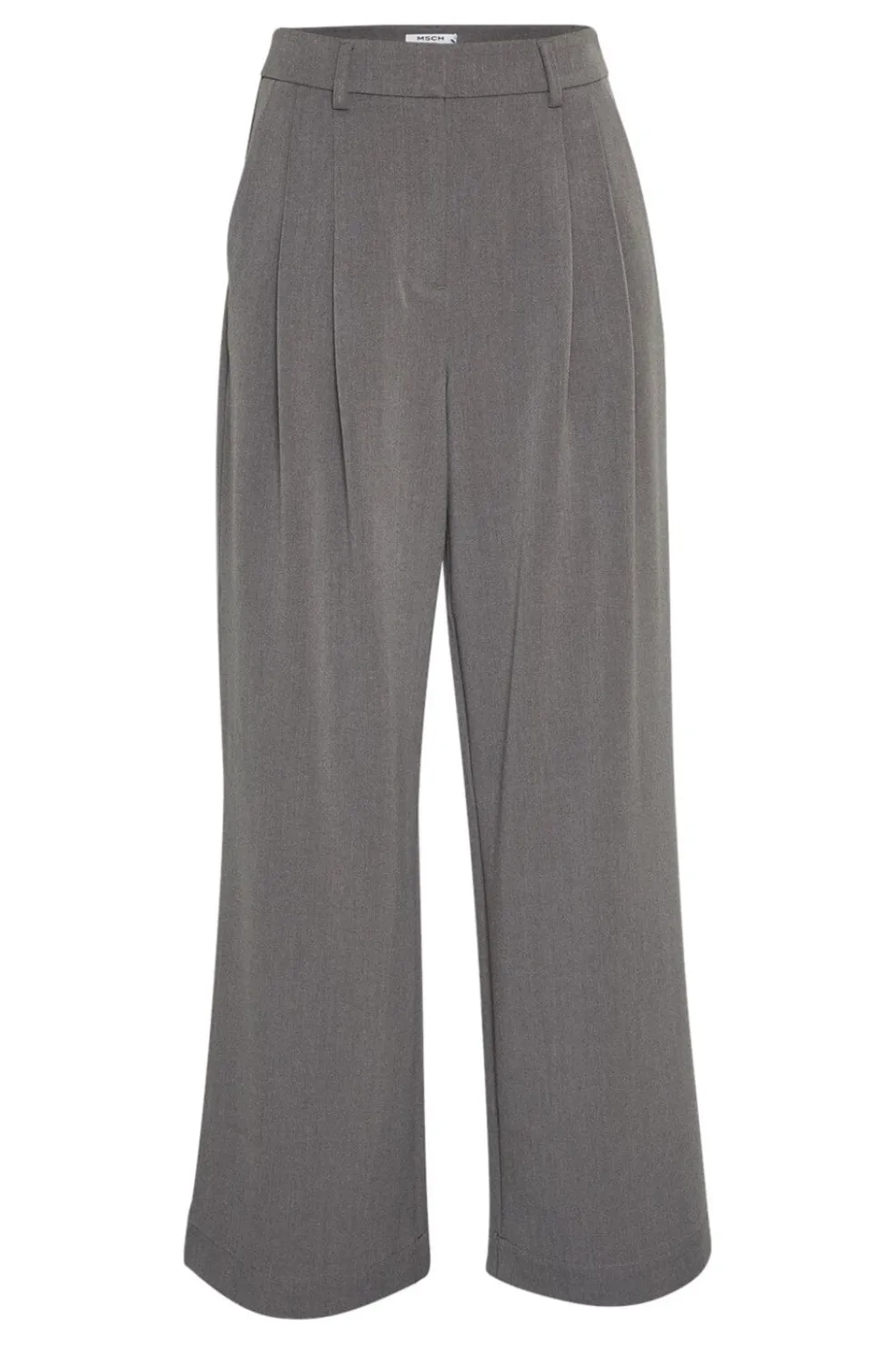 Grå melerede bukser i ankellængde med regular fit. Bukserne har folder foran og en bred benstil med god bevægelsesfrihed.