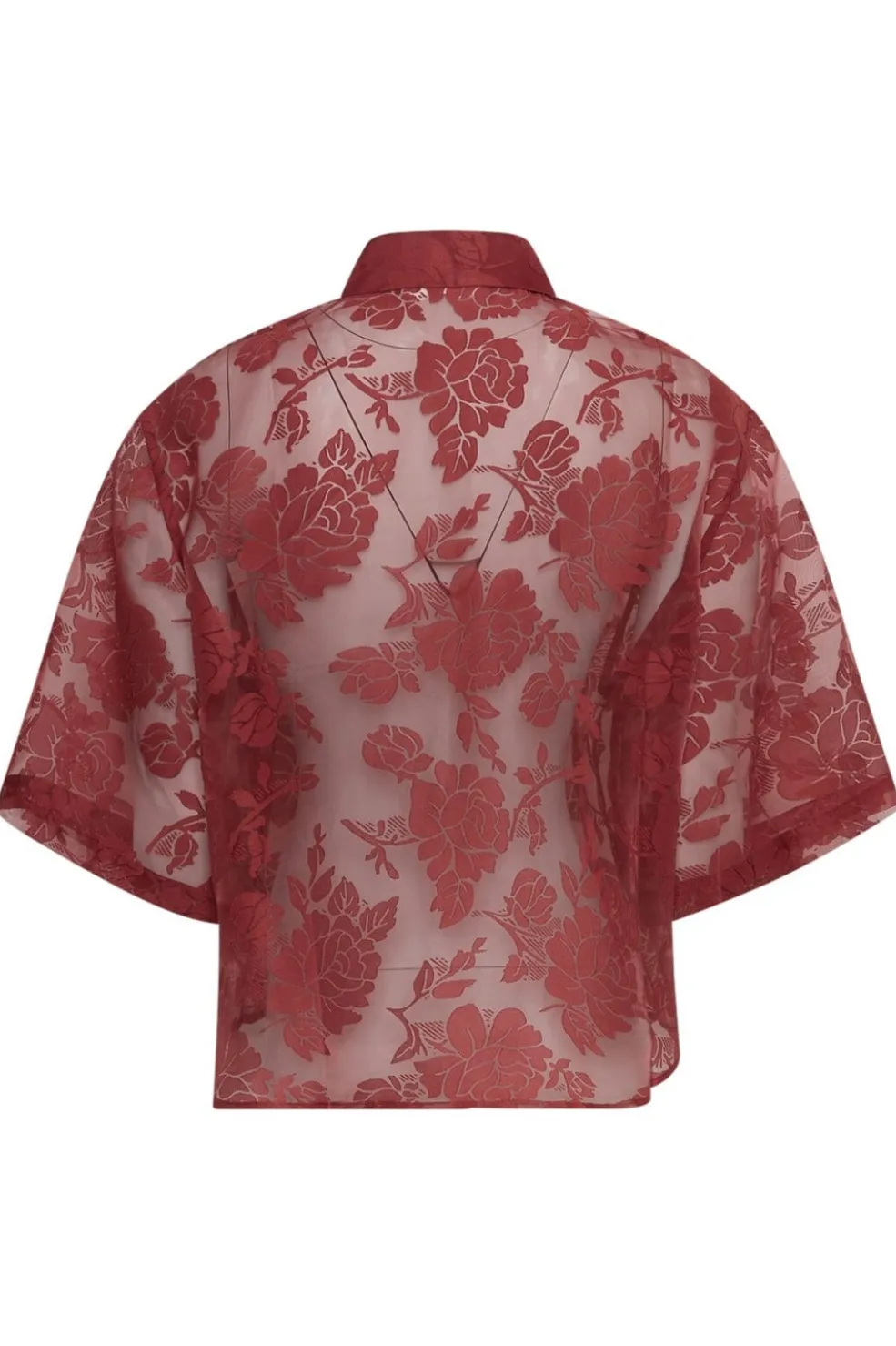 En skjorte fra MSCH Copenhagen i bordeaux nuance med floralt mønster. Lavet af 100 % polyester med broderede detaljer og en løs pasform.