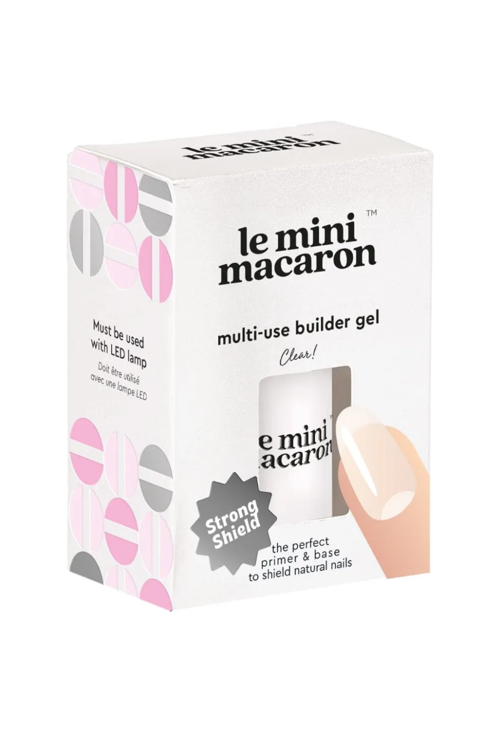 En klar builder gel på 8,5 ml fra Le Mini Macaron til negleforstærkning, negleforlængelse og som base coat.