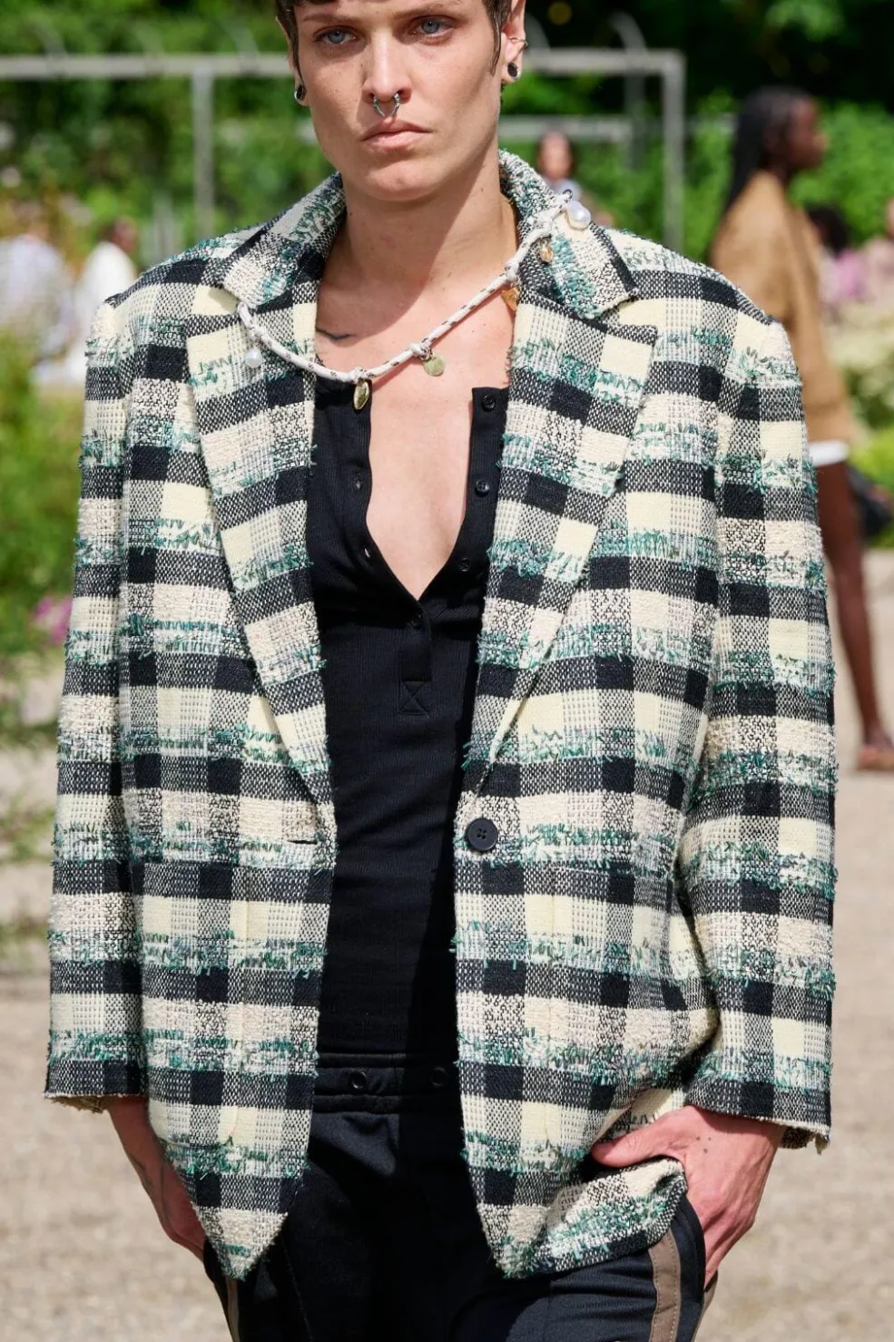 Ternet blazer fra Munthe i sort, creme og hvid. Blazeren har en let oversize-pasform og er lavet af blød, vævet kvalitet med 53 % polyester, 33 % akryl og 14 % uld.