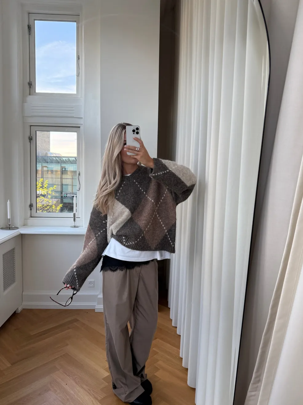 - Argyle-mønster i brune og beige nuancer
