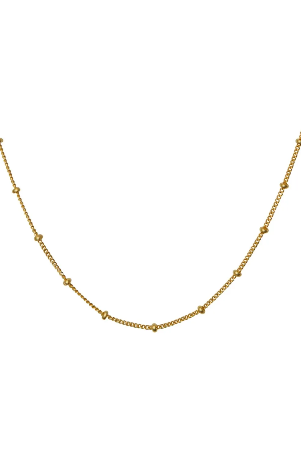 Guldbelagt chokerhalskæde fra Maanesten med små kugleformede detaljer langs kæden. Det tætsiddende halskæde har en længde på 41 cm og passer både alene og sammen med andre smykker.