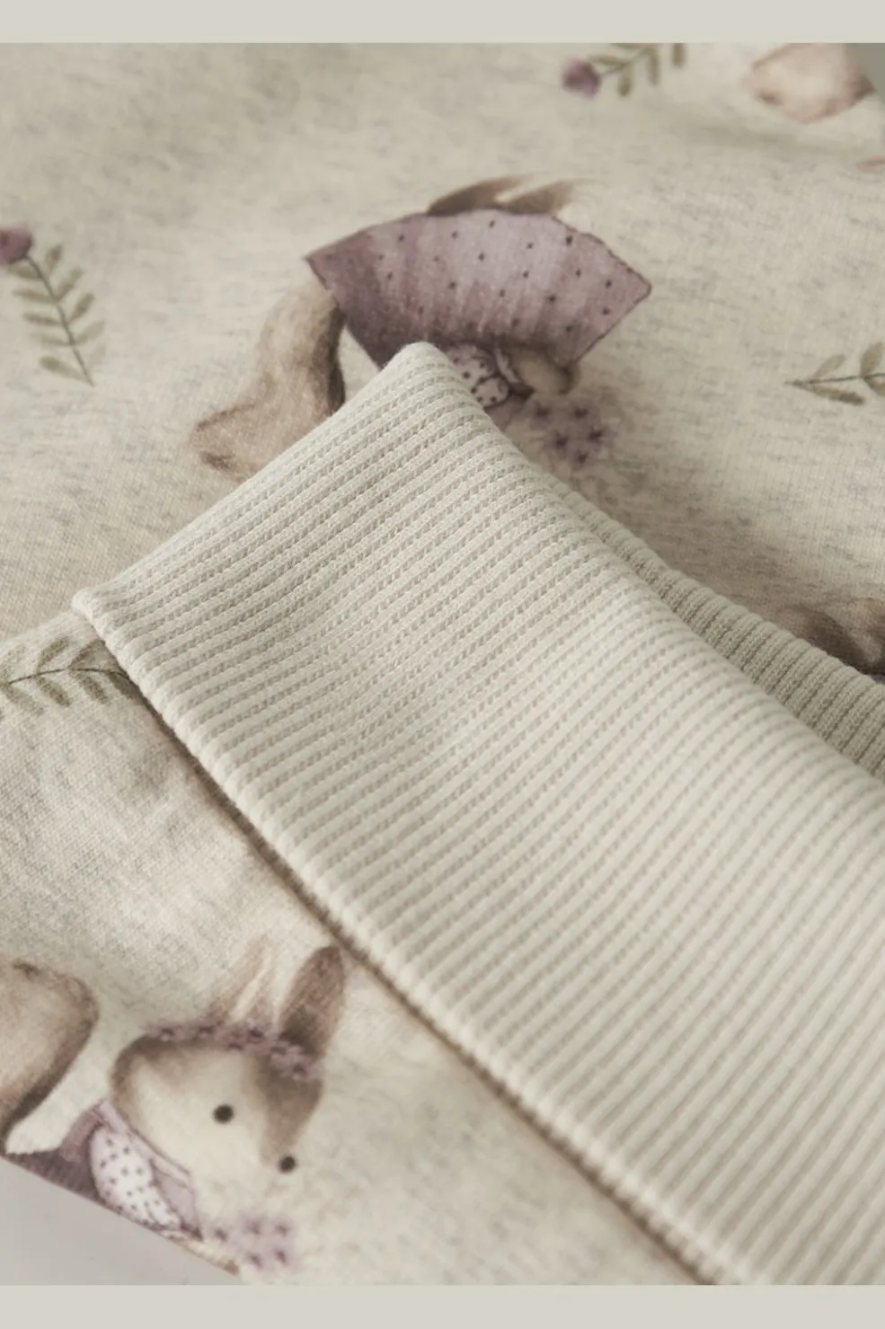 Beige sweatpants fra Name It med høj talje og ankel-længde. Bukserne har et sødt mønster med egern i kjoler og er udstyret med ribkant ved taljen og benene.