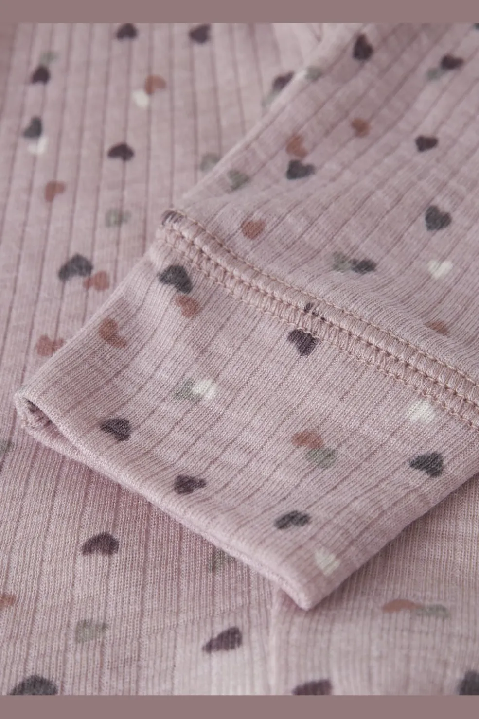 Grå leggings fra Name It med hjerteformet print. Fremstillet i en blanding af merinould og modal, der giver en blød og varm fornemmelse mod huden.