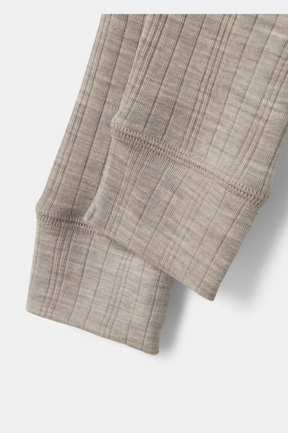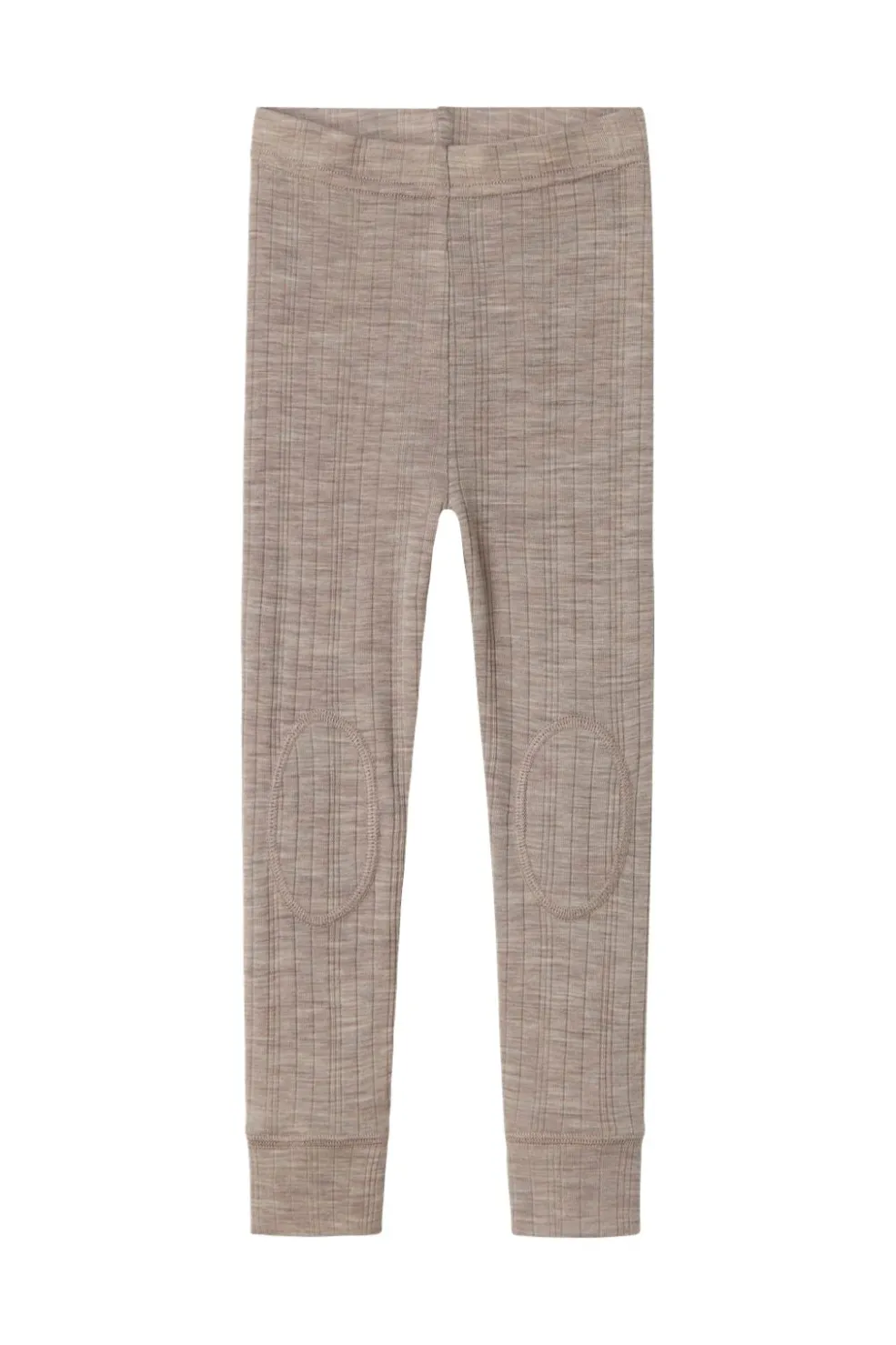 Lange underbukser fra Name It i beige merinould med ribbet tekstur. Bukserne har knælapper og dekorative syninger, som giver et rustikt udtryk.