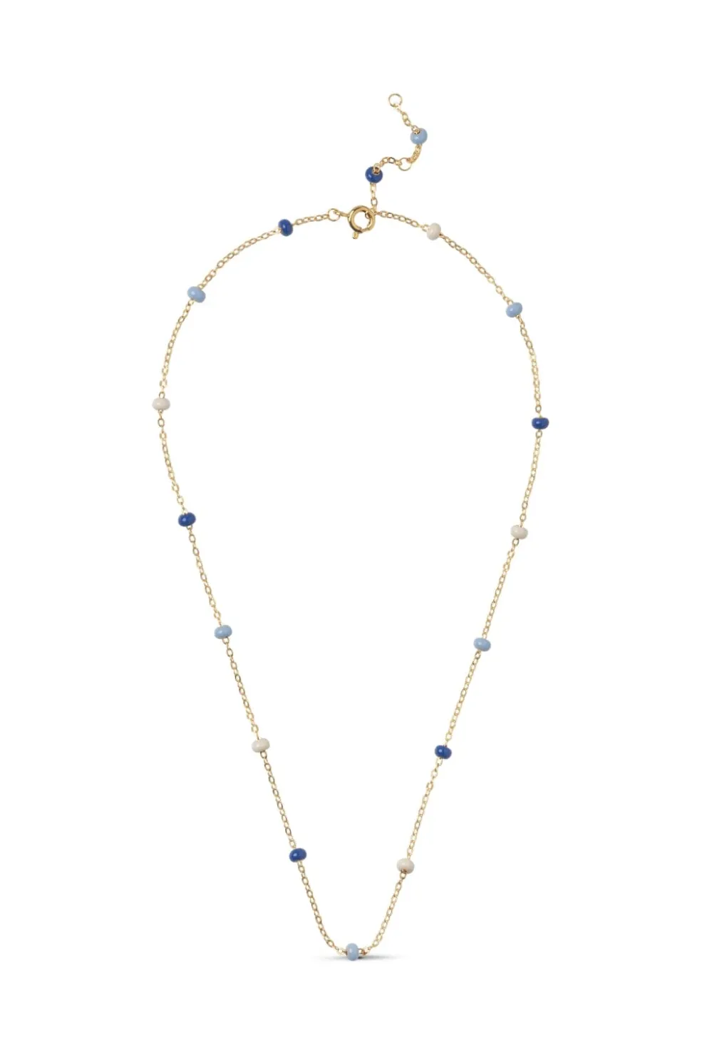 Halskæde fra Enamel Copenhagen med håndmalede emaljeperler i marineblå nuancer. Kæden er fremstillet af guldbelagt genanvendt sterling sølv med større perler for ekstra karakter.