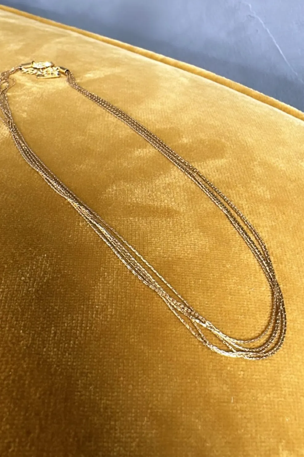 Flerlags halskæde fra Mellow Moon i rustfrit stål med 18K ægte guldbelægning. De fine kæder skaber et smukt samspil med hinanden og giver smykket dybde.