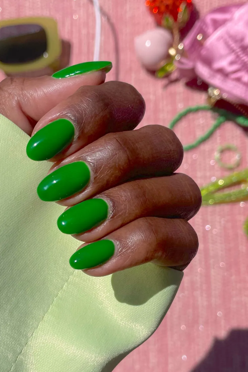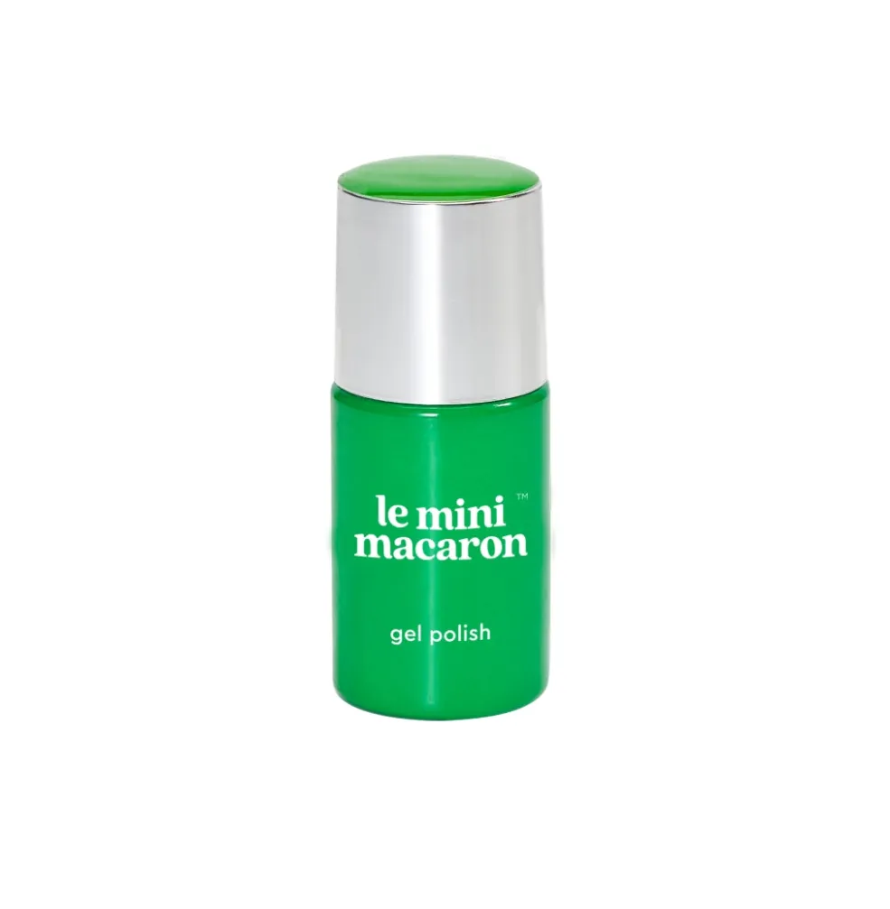 Grøn gelneglelak fra Le Mini Macaron med 3-i-1 formel, der samler base coat, farve og top coat i ét produkt.
