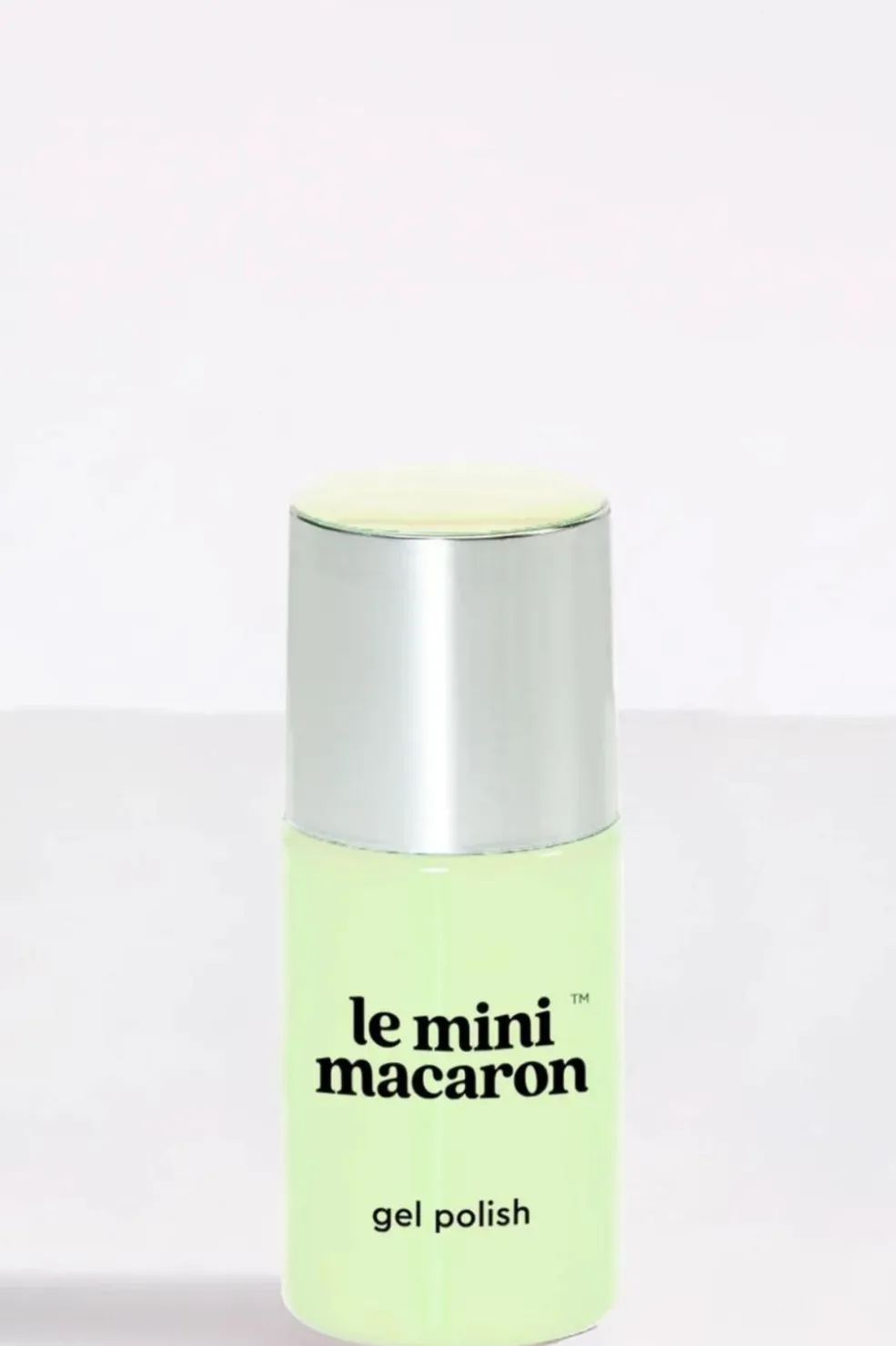 Gelneglelak i en lys grøn nuance. Lakken giver en blank finish og har en 3-i-1 formel med base, farve og topcoat samlet i ét produkt.