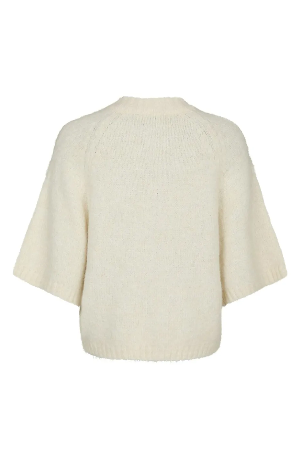 Strikket cardigan fra Neo Noir i off-white. Den har en fluffy tekstur og en løs pasform med vidde i ærmerne.
