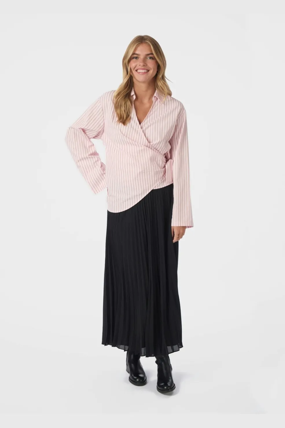 Sort plisseret nederdel fra Neo Noir i ankellængde. Den høje talje og det plisserede design giver nederdelen et rent og enkelt udtryk.