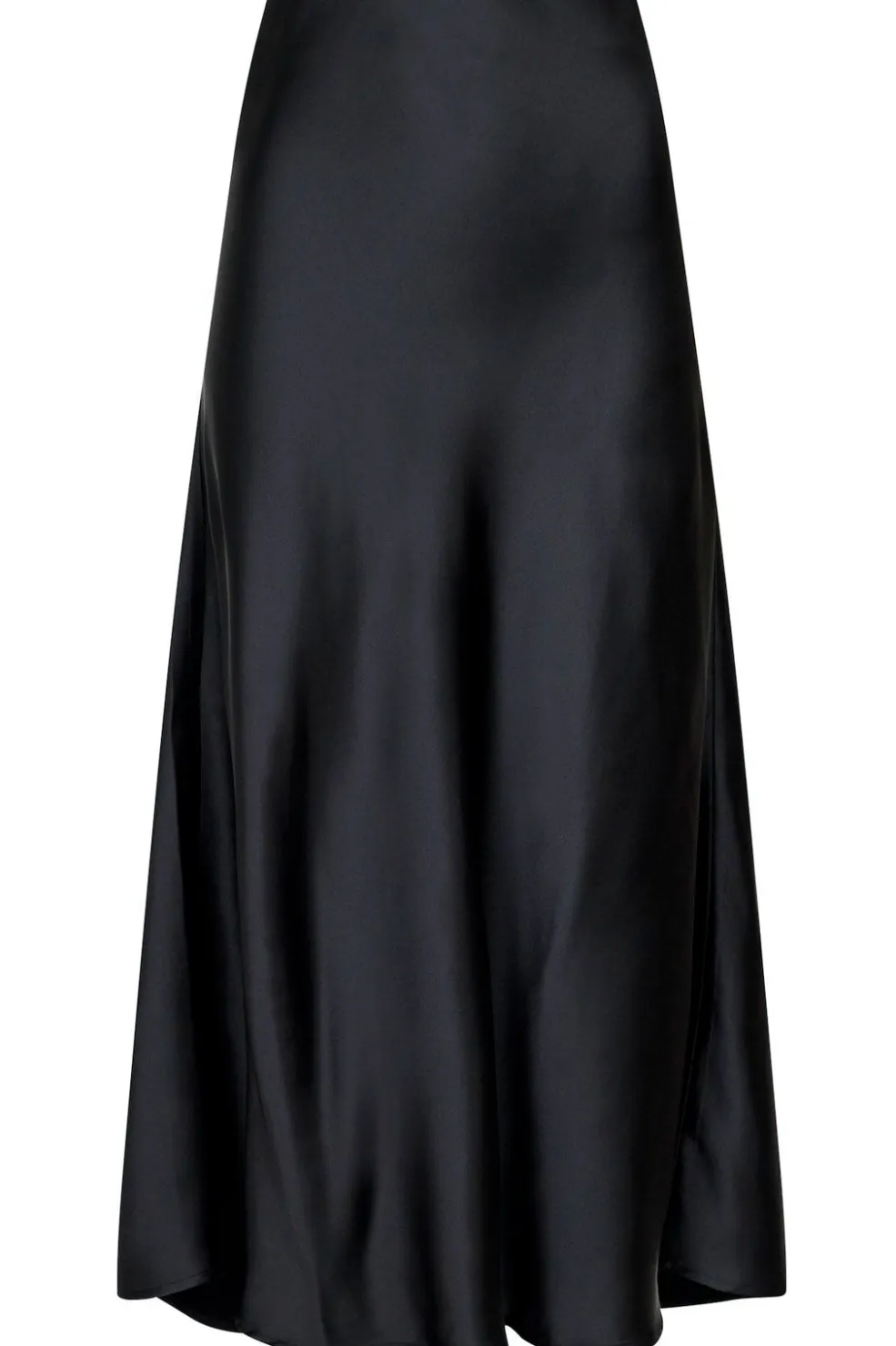 Sort satin-nederdel fra Neo Noir med skinnende overflade. Den går til midt på skinnebenet og har en løs pasform med elastik i taljen.