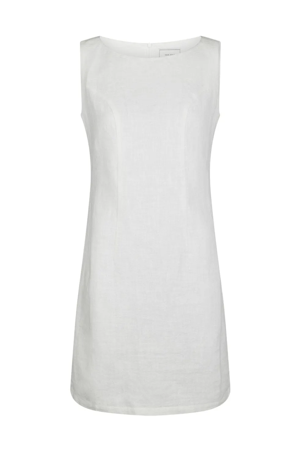 Ærmeløs kjole fra Neo Noir i off-white. Lavet af en let ramie- og bomuldsblanding med bådudskæring og lynlås bagpå. Let og luftig til varme sommerdage.