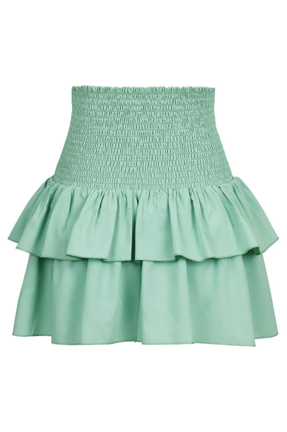 Grøn nederdel fra Neo Noir med smock-detaljer i taljen. Den todelte flæsekant og den elastiske pasform giver nederdelen et let og bevægeligt udtryk.