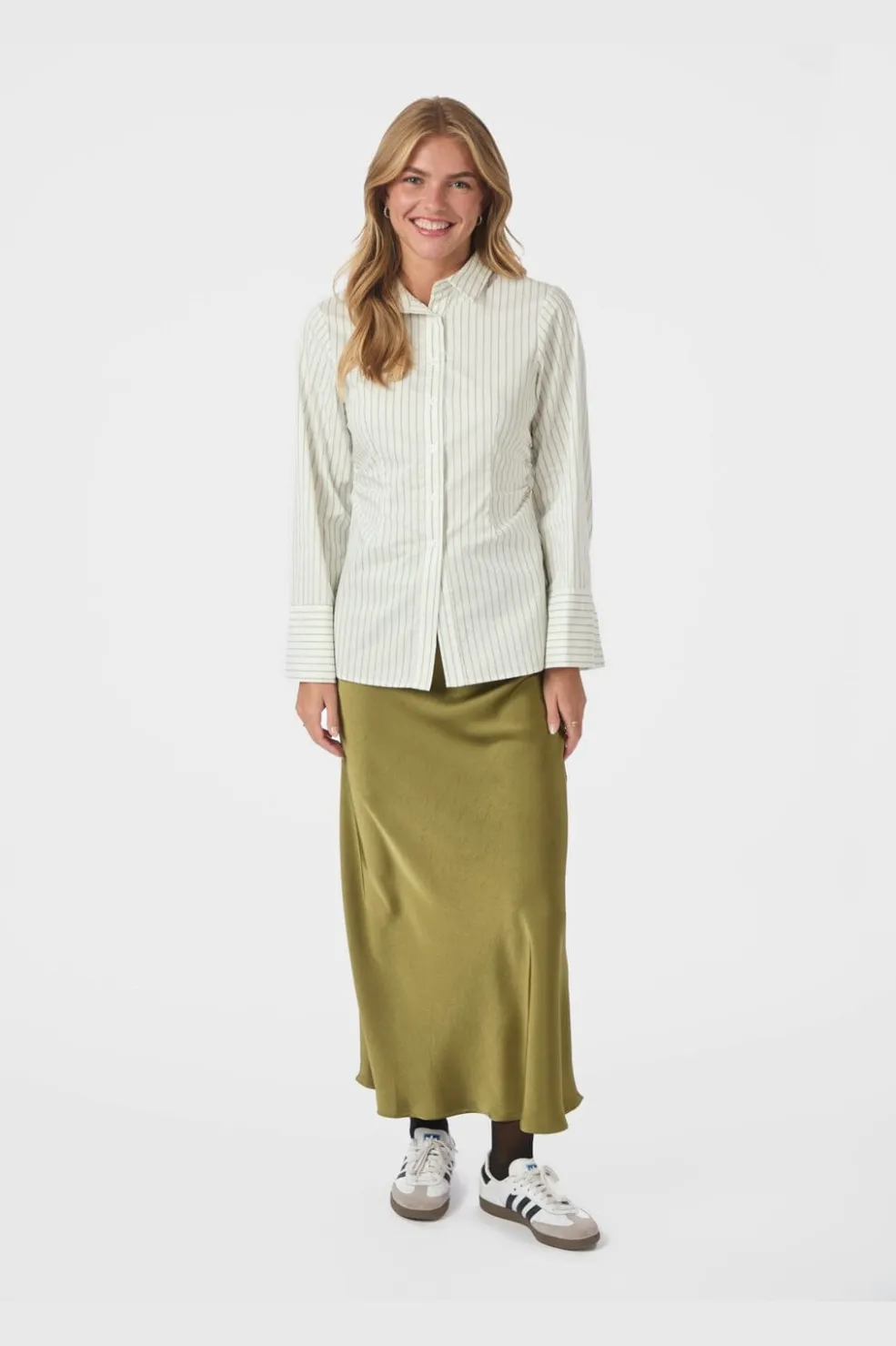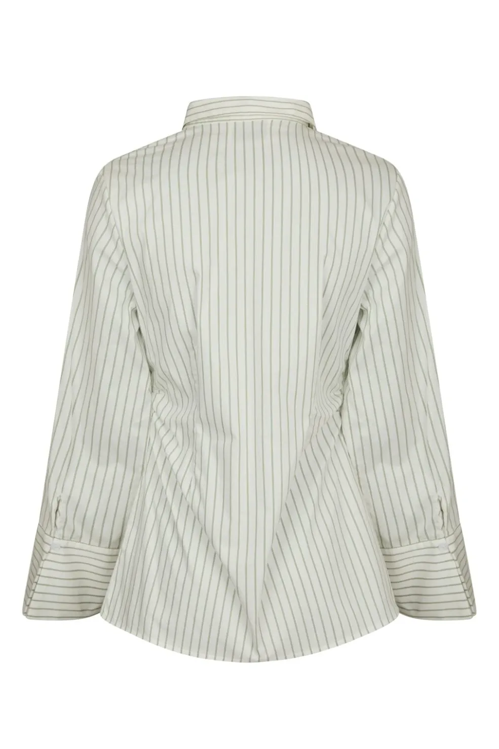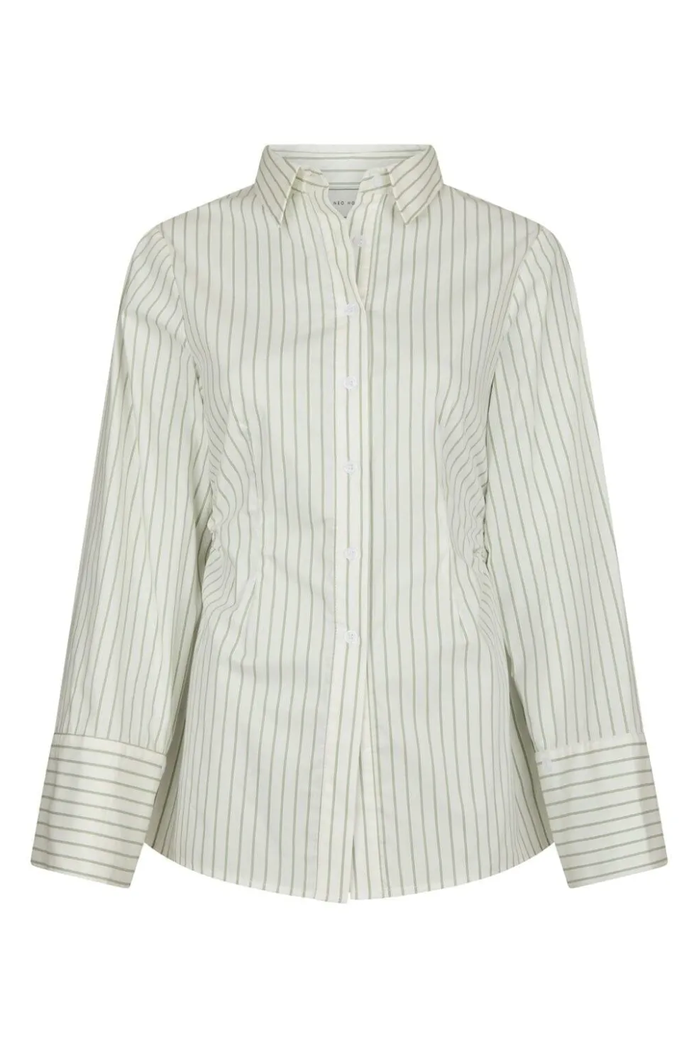 Stribet skjorte fra Neo Noir i støvet grøn. Skjorten har lodrette striber i grøn og creme på en hvid bund.