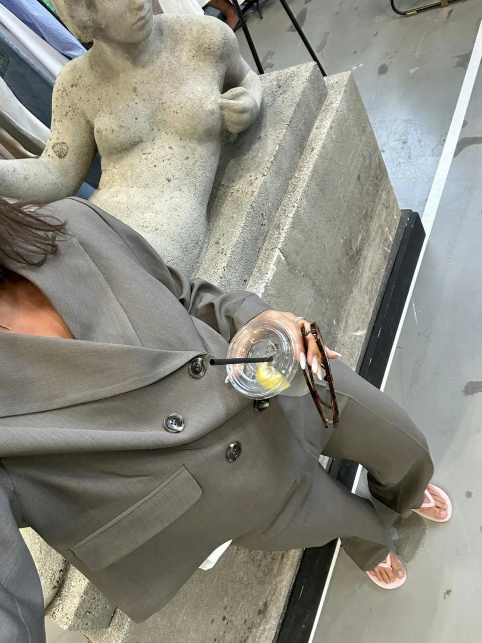 Khakifarvet blazer fra Neo Noir med dobbeltradet knaplukning. En struktureret blazer med V-udskæring og lange ærmer, der kan styles til både hverdag og fest.