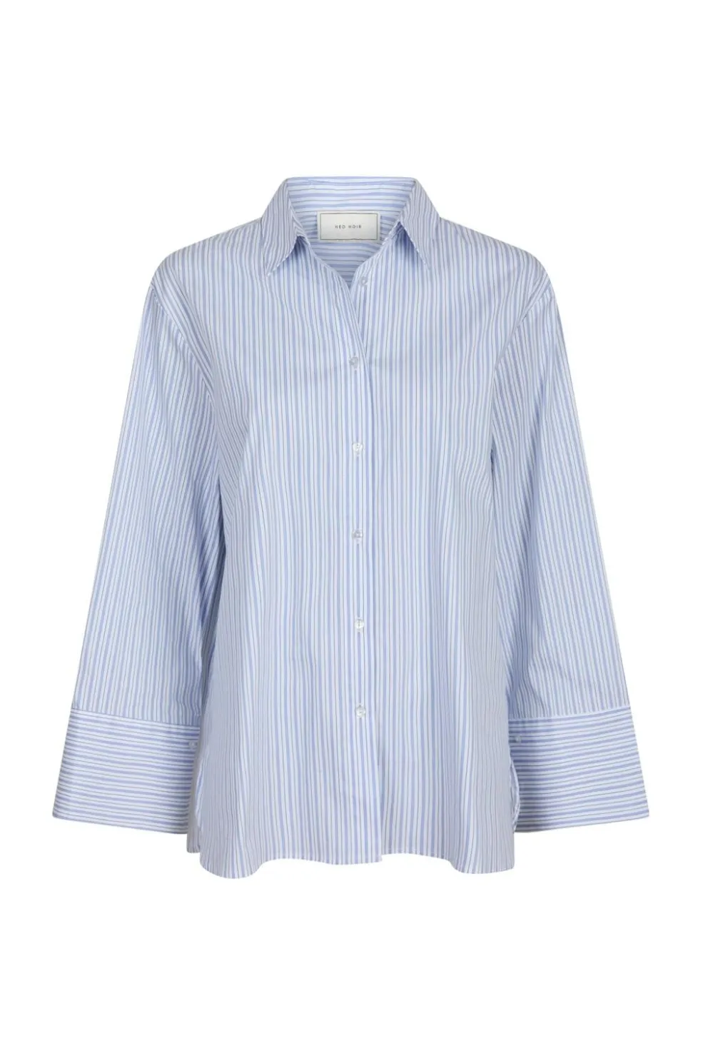 Stribet skjorte fra Neo Noir i lyseblå. Skjorten har en klassisk skjortekrave og lange ærmer med knaplukning foran.