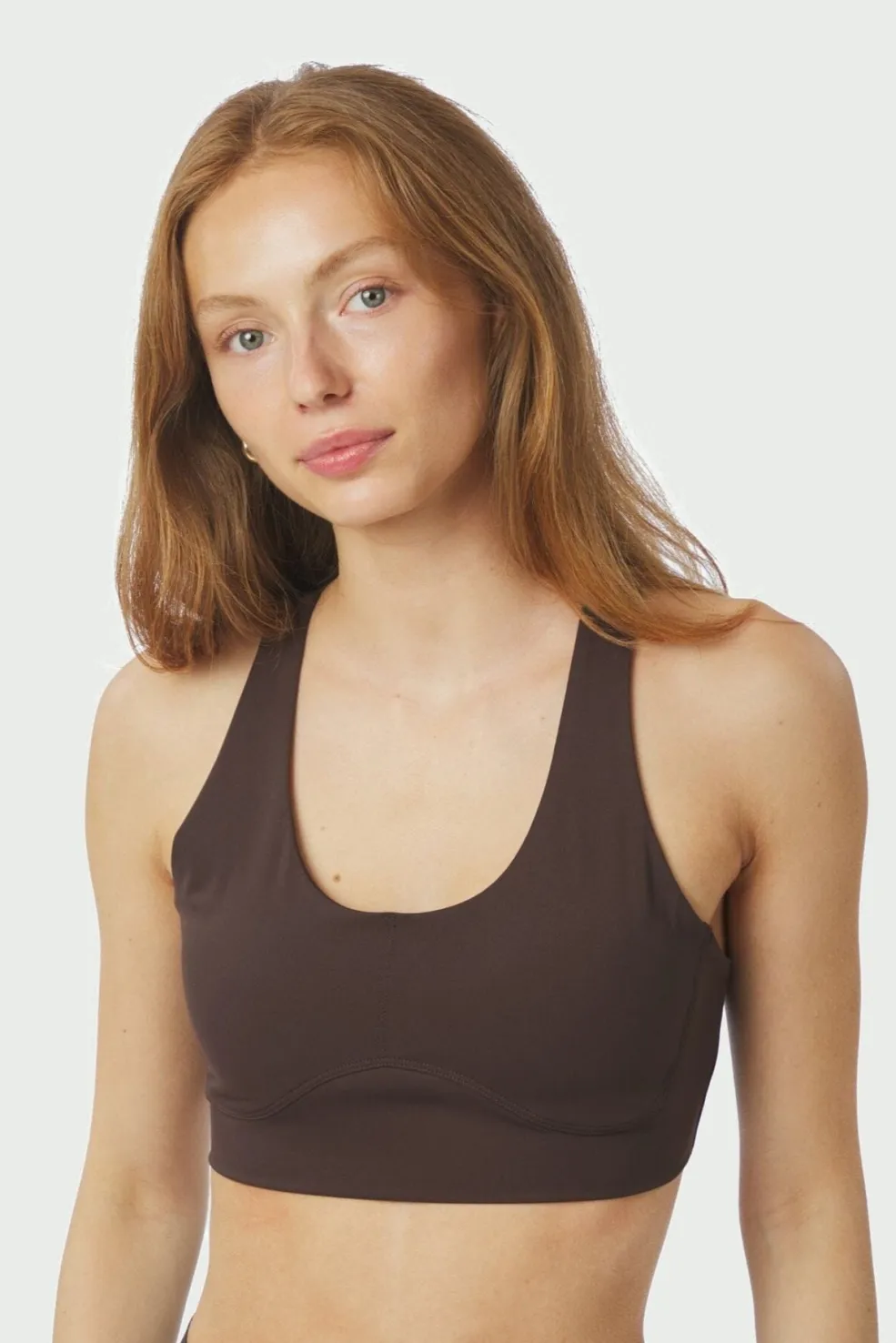 Chokoladebrun top fra Neo Noir, lavet til aktivt brug. Toppen er i en strækbar kvalitet og har et skinny fit-design med racerback på ryggen.