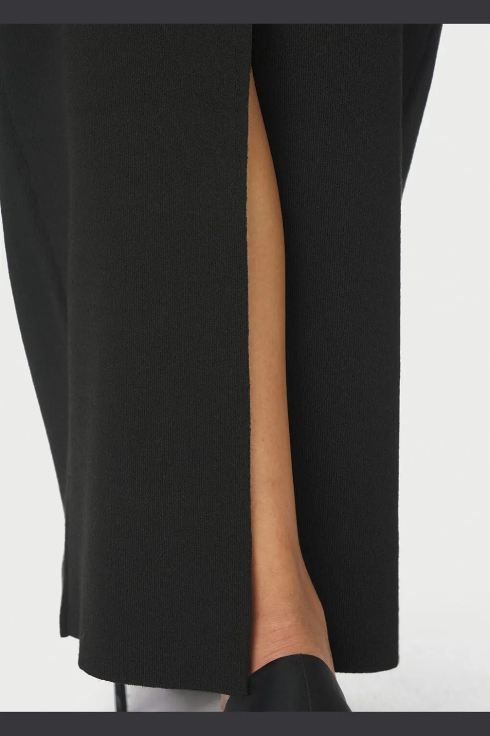 Sort strikket nederdel fra Neo Noir i fast strik med stretch. Nederdelen har en lige pasform med elastisk talje og en slids bagpå, der gør den behagelig at have på.