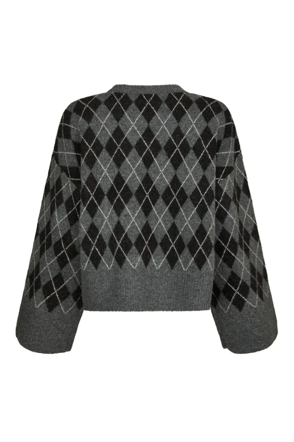 Strikbluse fra Neo Noir med et ternet mønster i grå og sorte nuancer. Blusen har dekorative syninger og en løs pasform.
