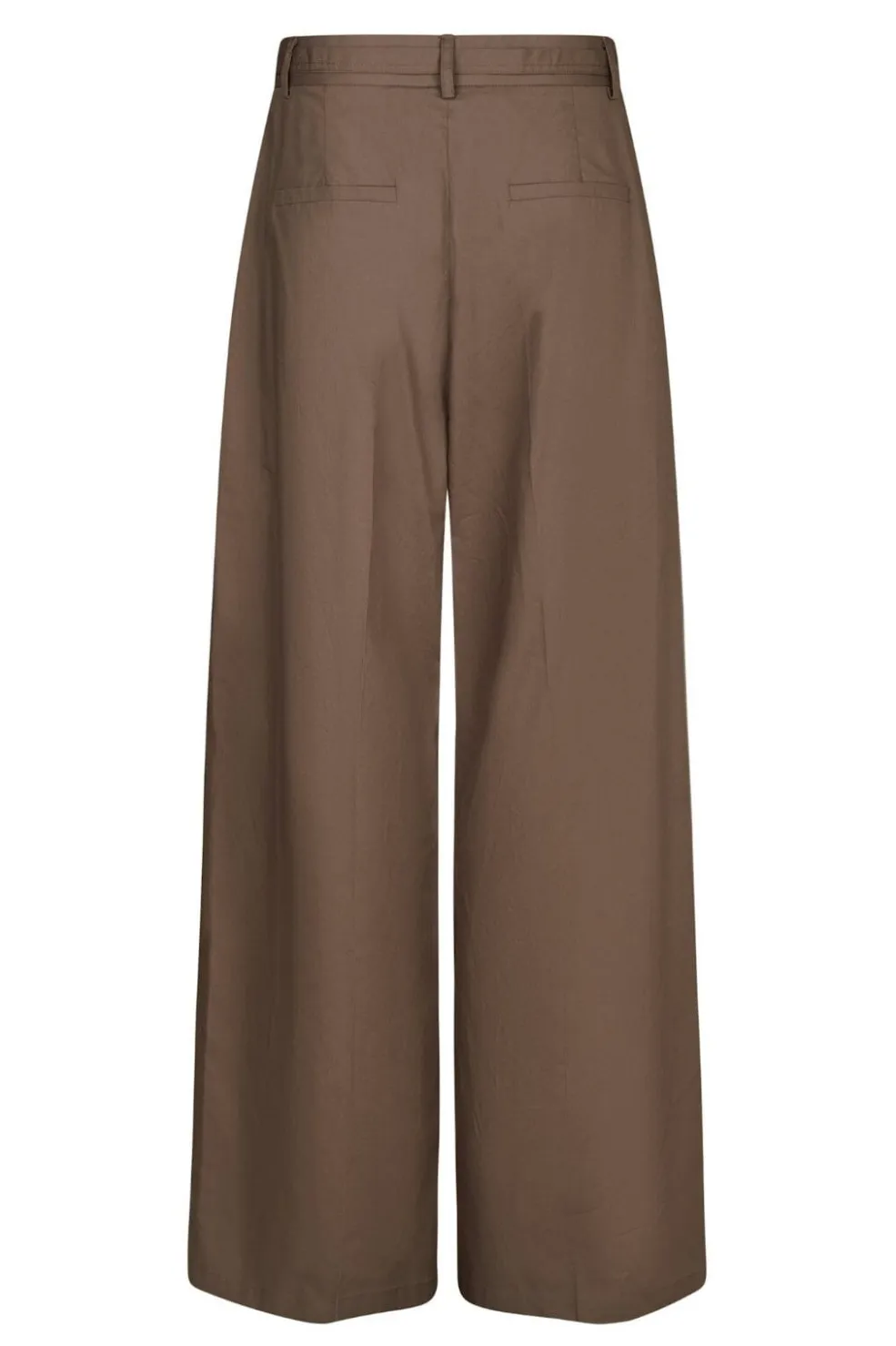 Poplinbukser fra Neo Noir i støvet brun. Bukserne har høj talje og pressefolder foran. Den vide benåbning og det lette poplinmateriale giver bukserne et luftigt udtryk.