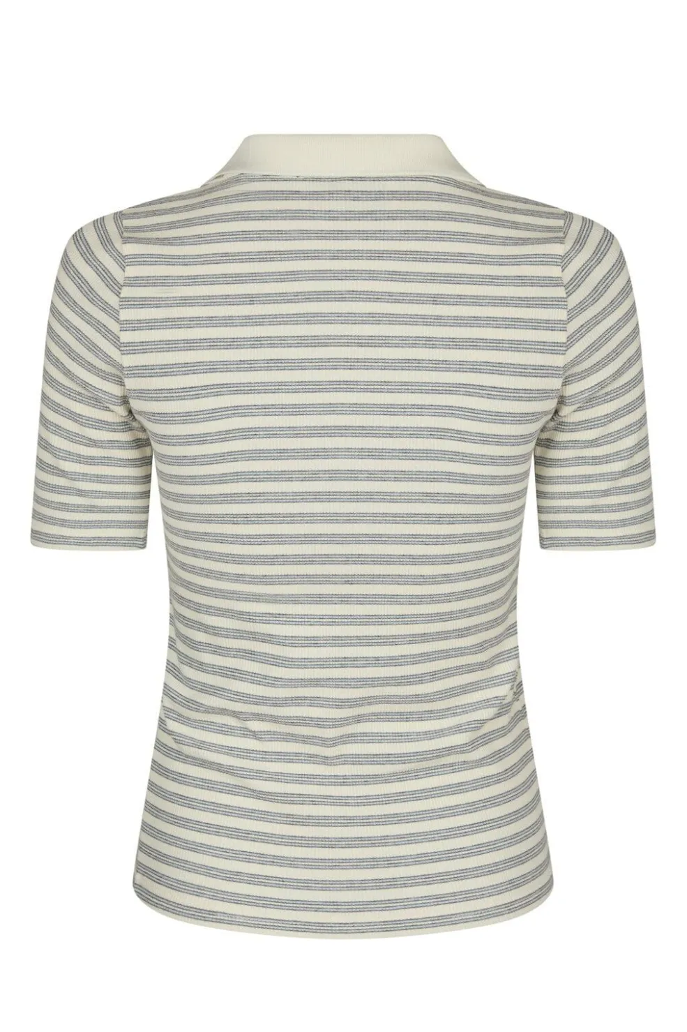 Stribet polobluse fra Neo Noir i lyseblå og cremefarvede striber. Blusen har en slim fit-pasform og er lavet af blødt bomuldsstof med stretch.