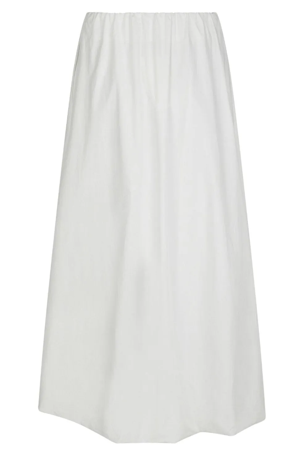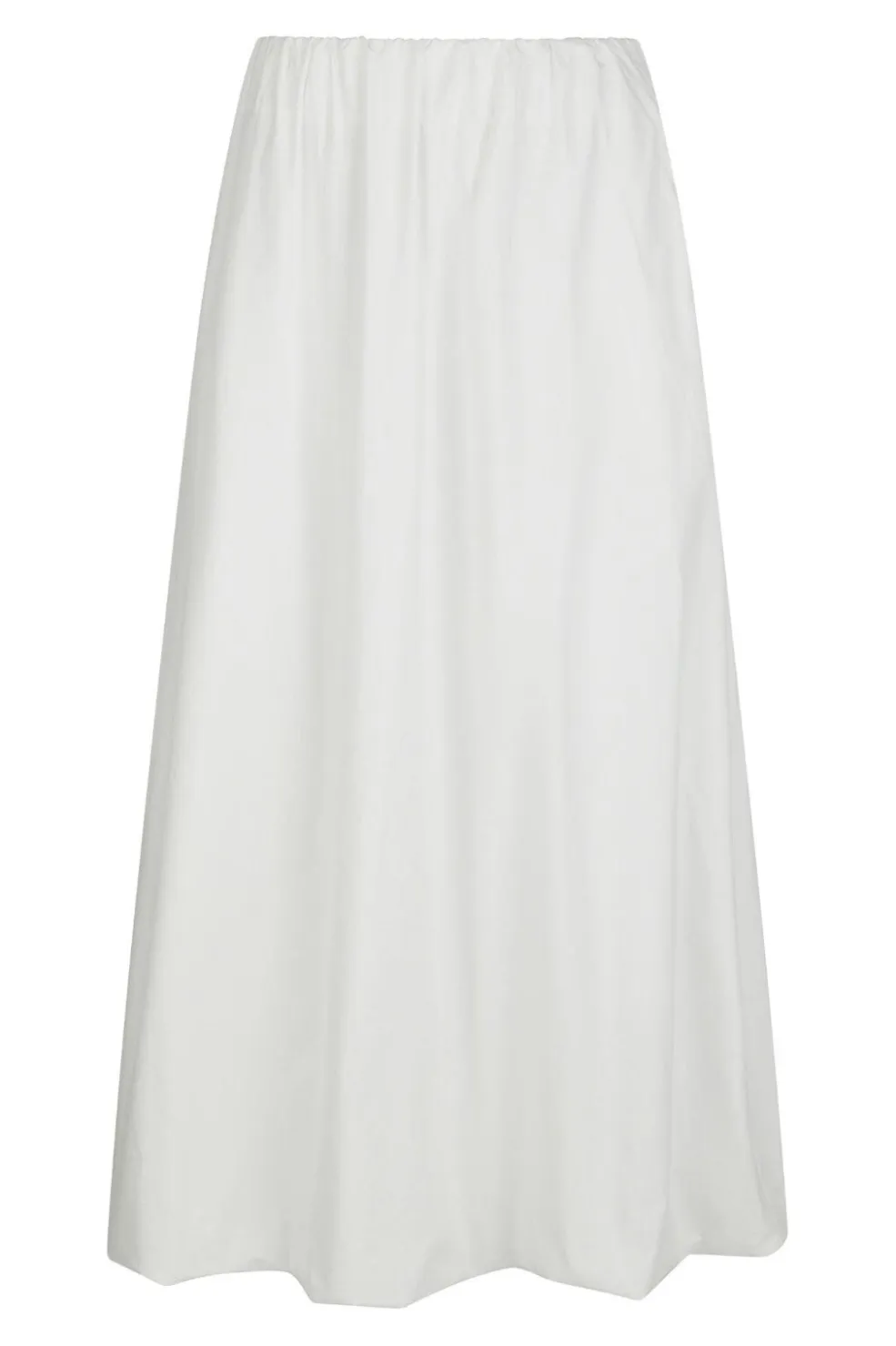 Hvid lang nederdel fra Neo Noir med balloneffekt. Nederdelen har flæser og elastik i taljen, hvilket skaber en karakteristisk silhuet med god bevægelighed.