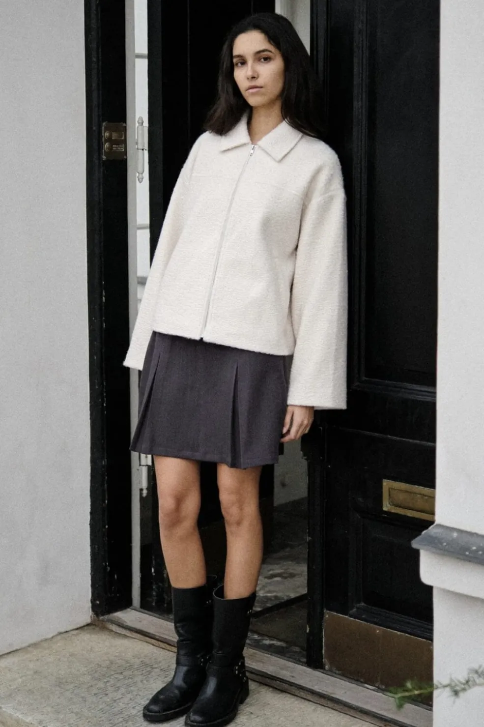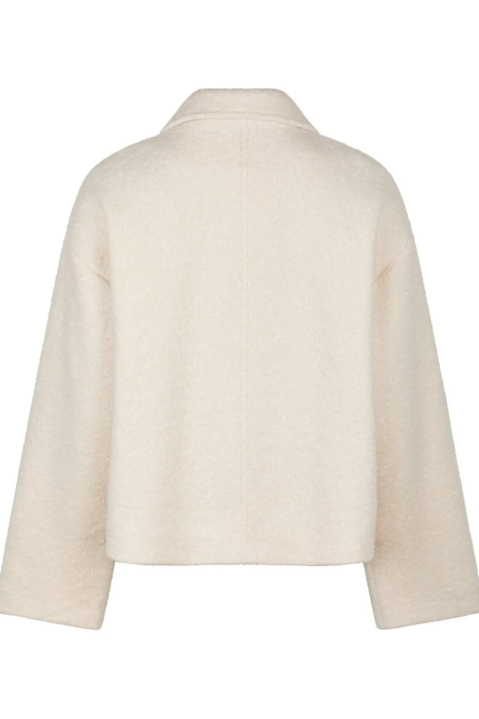 Off-white bouclejakke fra Neo Noir med skjortekrave og lynlåslukning. Jakken har en oversize pasform og er fremstillet i en blød nylonkvalitet.
