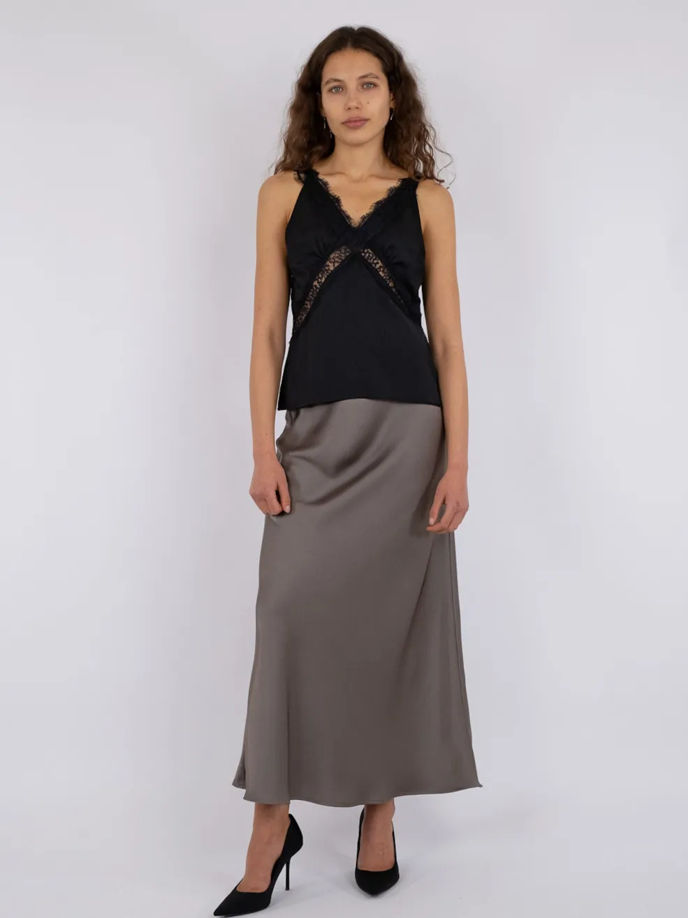 Model: Vicky Heavy Sateen Skirt
