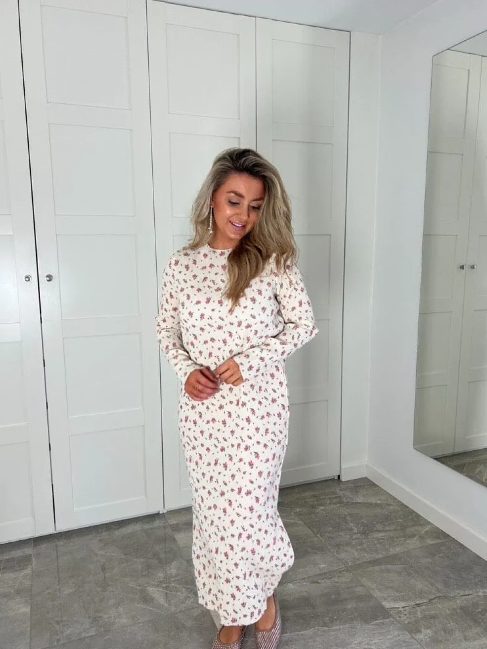 - Modellen er 176 cm høj og bærer størrelse 36