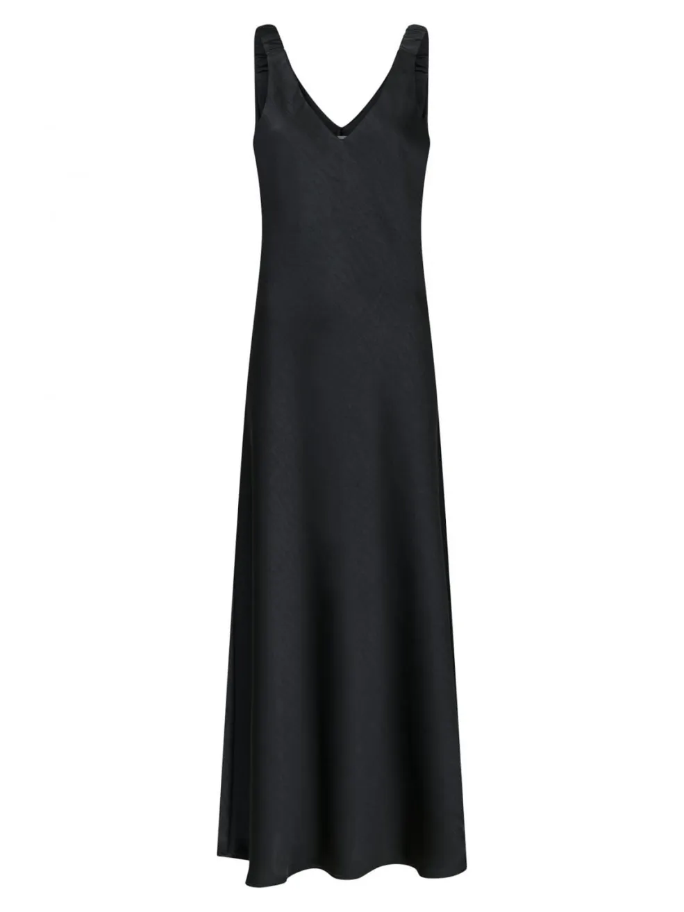 Sort ankellang kjole fra Neo Noir i kraftig satin. Kjolen har en løs pasform med V-hals og tynde stropper, der giver en flot silhuet.