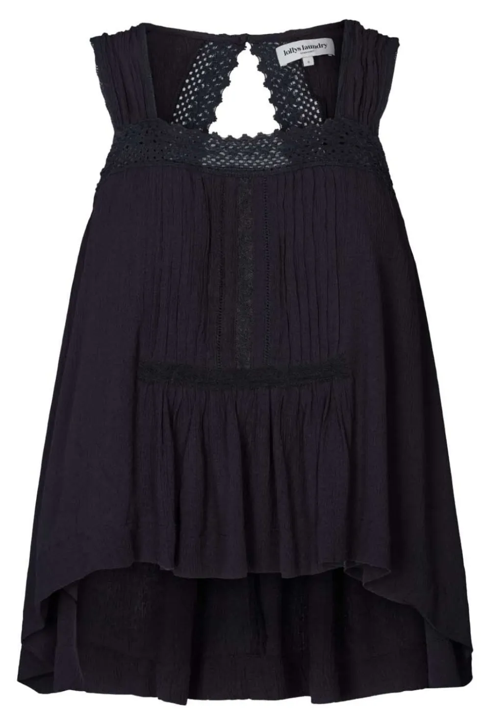 Flot top med firkantet halsudskæring, tykke stropper og en smuk lille åben detalje på ryggen. Den har en almindelig pasform foroven, udvider sig til en løs pasform forneden og er længere på ryggen for at skabe smukke lag.