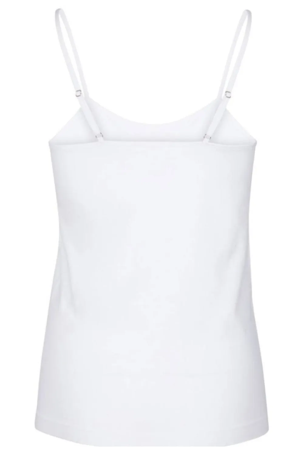 Hvid top fra Liberte med tynde stropper og rund hals. Toppen har en slim fit-pasform og er lavet af et blødt og stretchy stof, der giver god bevægelsesfrihed.
