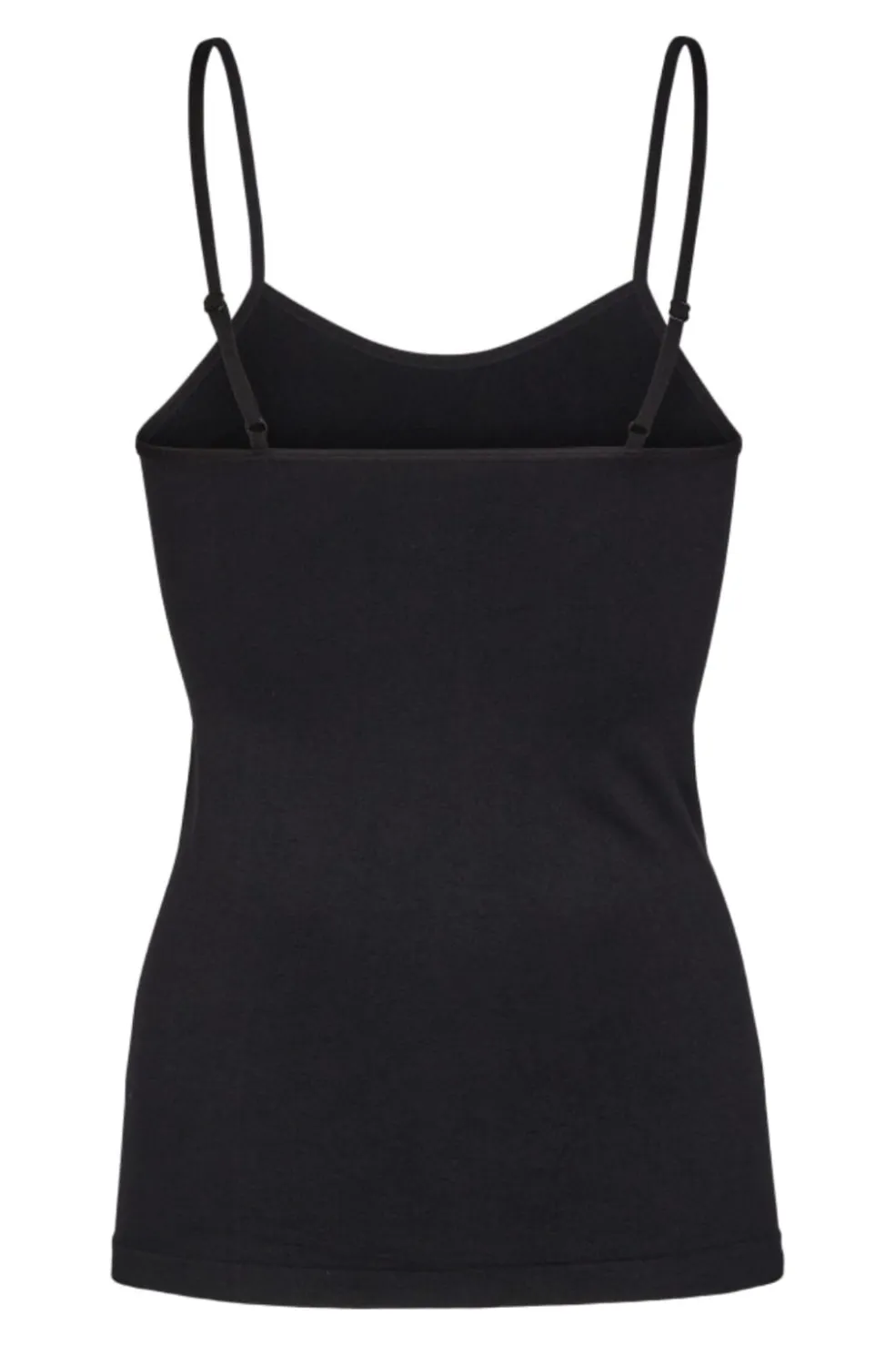 Sort top fra Liberte i blød kvalitet med tynde stropper. Toppen har en tætsiddende pasform og en rund halsudskæring, der gør den nem at style.