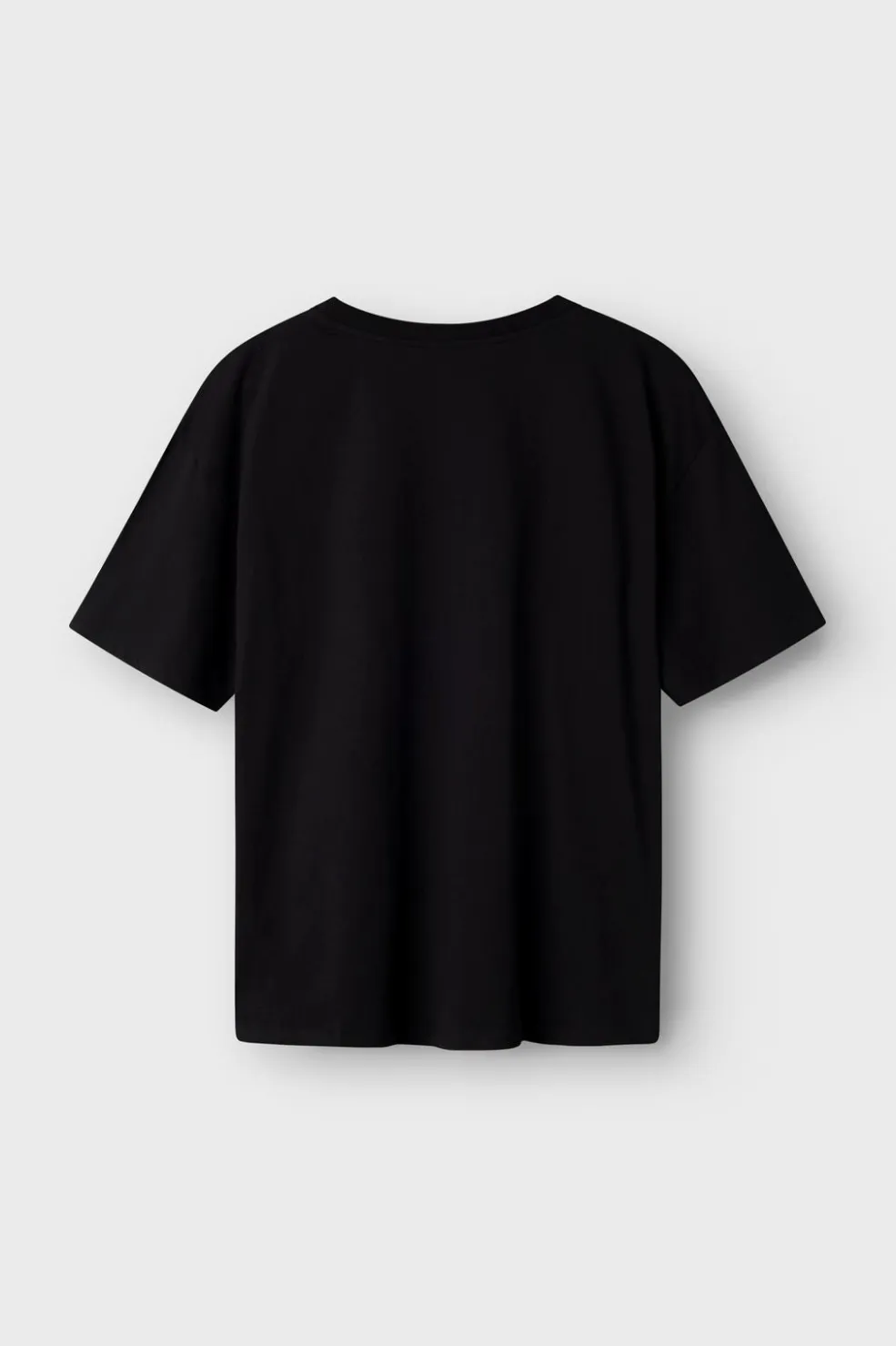 Sort t-shirt fra Lmtd i jersey-kvalitet. T-shirten har et grafisk design med Rolling Stones-logo og internationale flag i gummiprint. Den runde hals og de korte ærmer giver en klassisk t-shirt-silhuet.