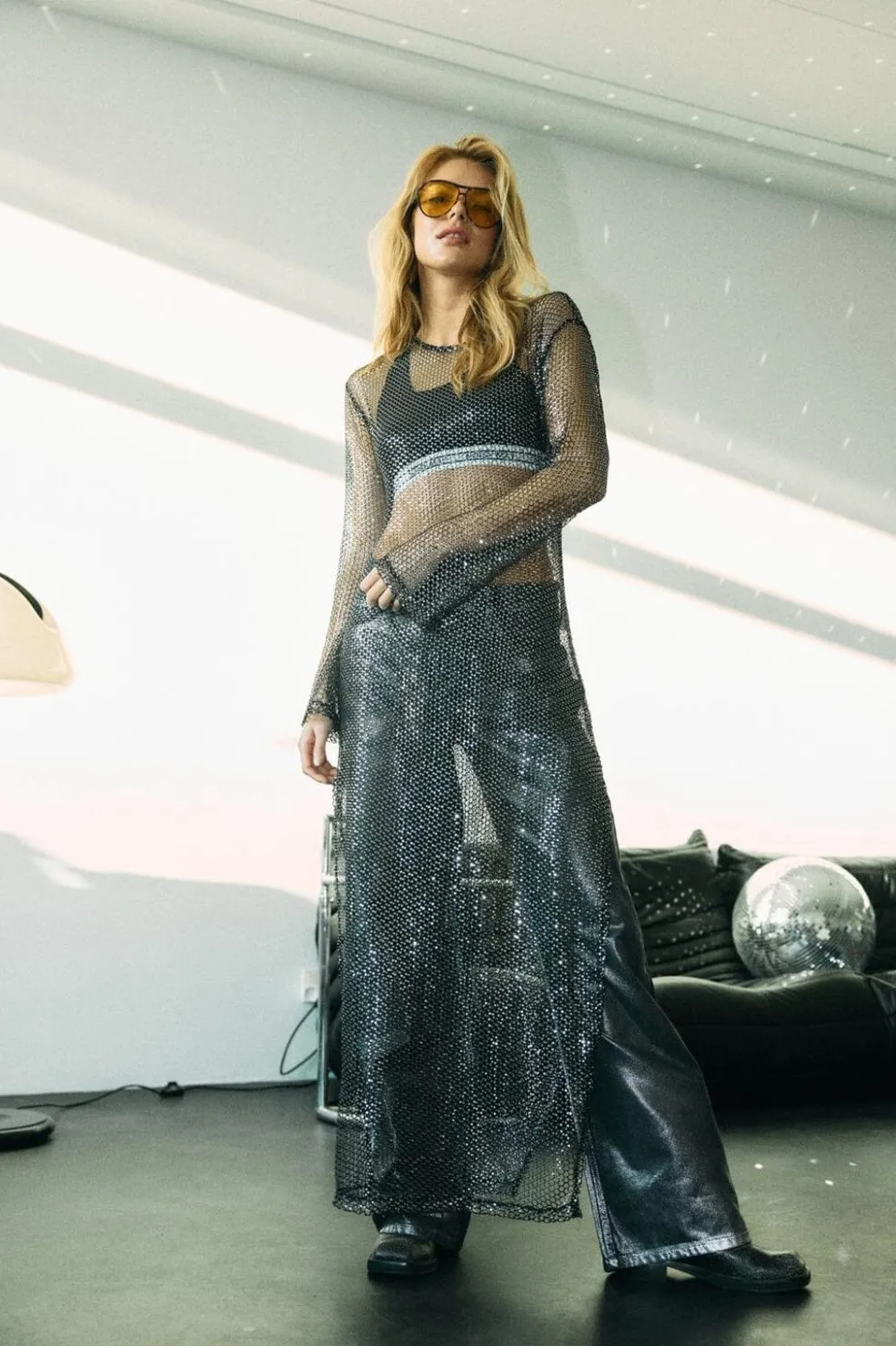 Jeans fra Noisy May med sølvbelagt overflade i mellemblå denim. Acid wash-effekten giver jeansene et skinnende, metallisk udtryk.