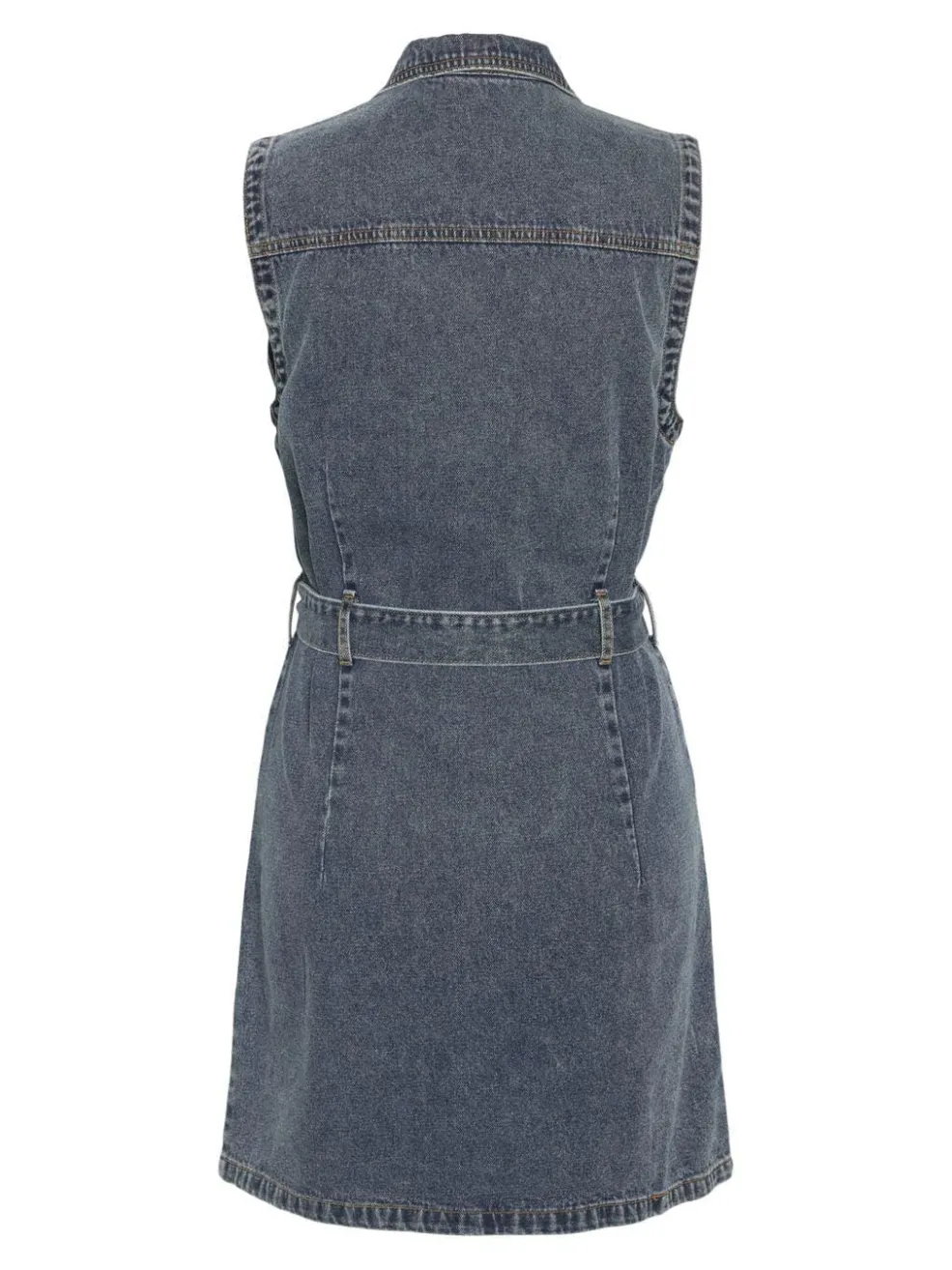 Denimkjole fra Noisy May i mellemblå denim. Kjolen er ærmeløs med skjortekrave og bindebånd i taljen. Regular fit og lårlængde giver bevægelsesfrihed.