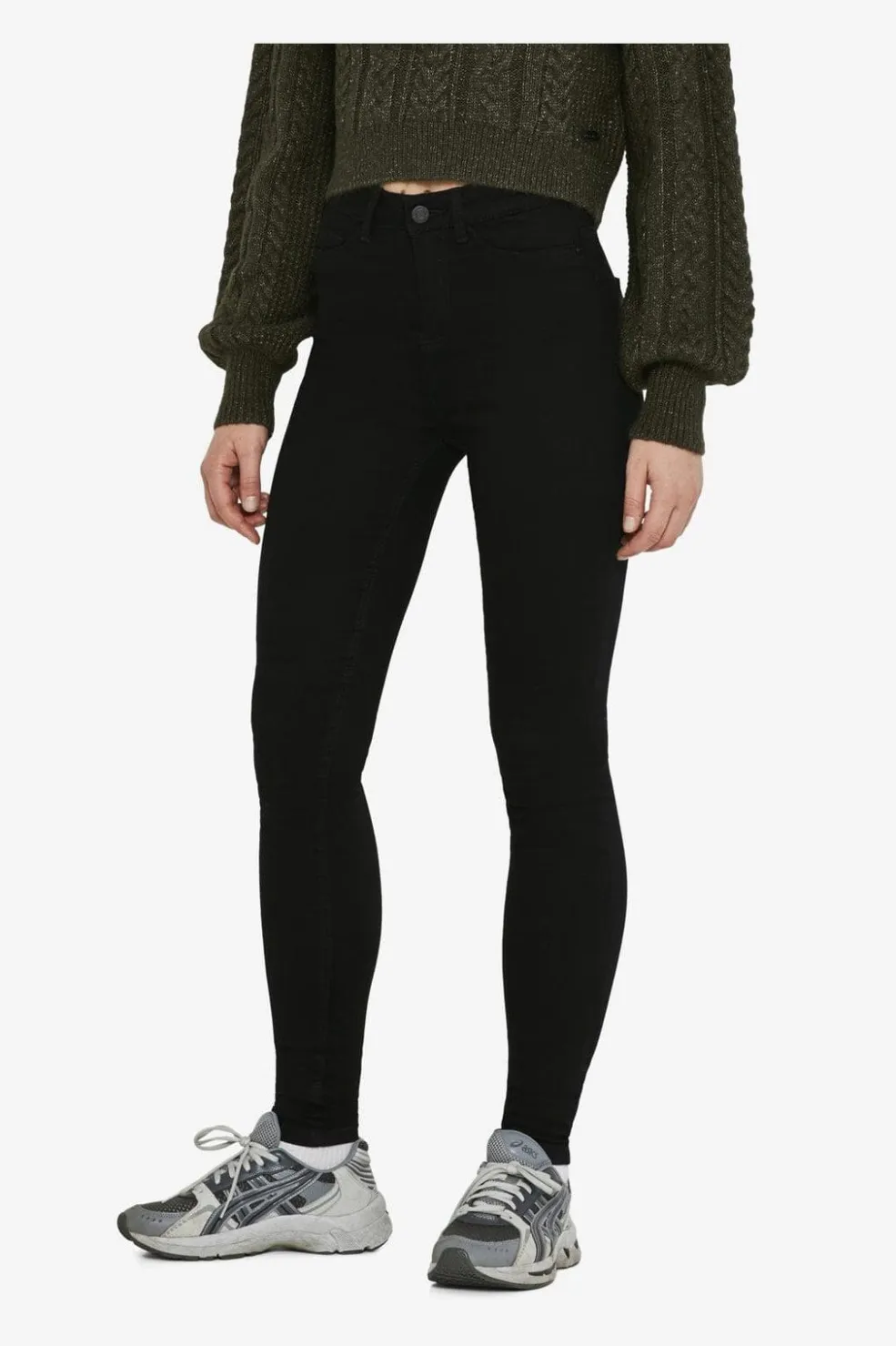 Sorte skinny jeans fra Noisy May i sort denim. Jeansene har en tætsiddende pasform og en høj talje.