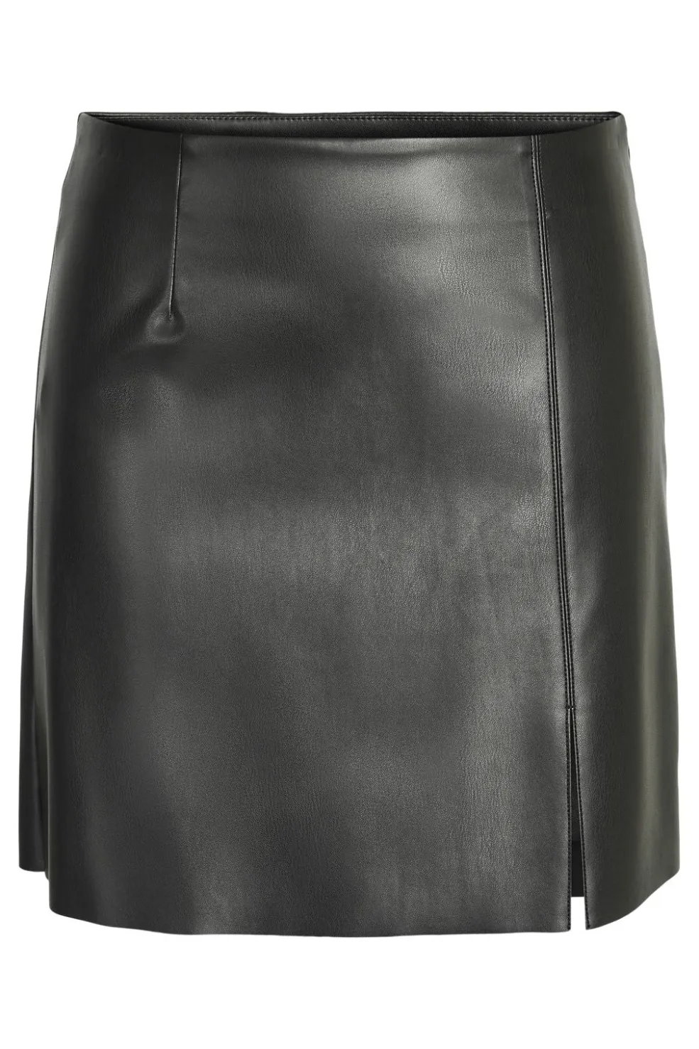 Sort nederdel fra Noisy May i læderagtig PU. Den højtaljerede nederdel har en slids foran og en lårlængde.